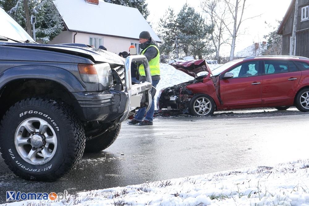 Kilkanaście minut opadów śniegu wystarczyło aby doszło do kolejnego nieszczęścia na drodze. Na ulicy Sikorskiego czołowo zderzyły się Mitsubishi Pajero i Renault Megane. 44-letnia kierująca osobówką trafiła do łomżyńskiego szpitala. Do zderzenia doszło na wysokości restauracji Labirynt.