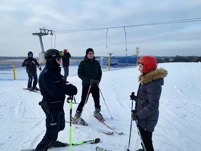 Na stoku narciarskim w Rybnie pojawiły się policyjne patrole narciarskie. Tuż obok, na kilka godzin stanął niebieski namiot pełen niespodzianek przygotowanych przez policjantów z Wydziału Prewencji. Działania profilaktyczne realizowane przez łomżyńskich funkcjonariuszy mają na celu zapewnienie bezpieczeństwa dzieciom i młodzieży podczas zimowego wypoczynku.