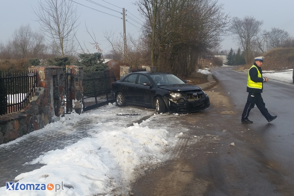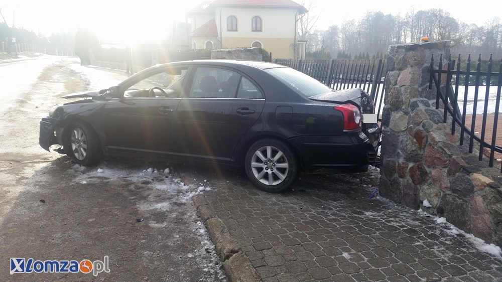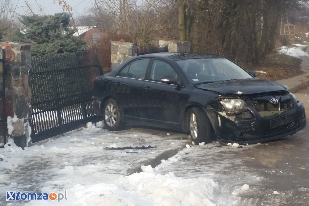 Tuż przed 9.00 na ulicy Czarnockiej w Piątnicy doszło do zdarzenia drogowego z udziałem osobowej Toyoty. Auto wpadło w poślizg na śliskiej nawierzchni i zatrzymało się na ogrodzeniu jednej z posesji. Kierująca samochodem kobieta została przewieziona do szpitala.