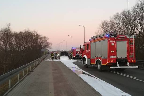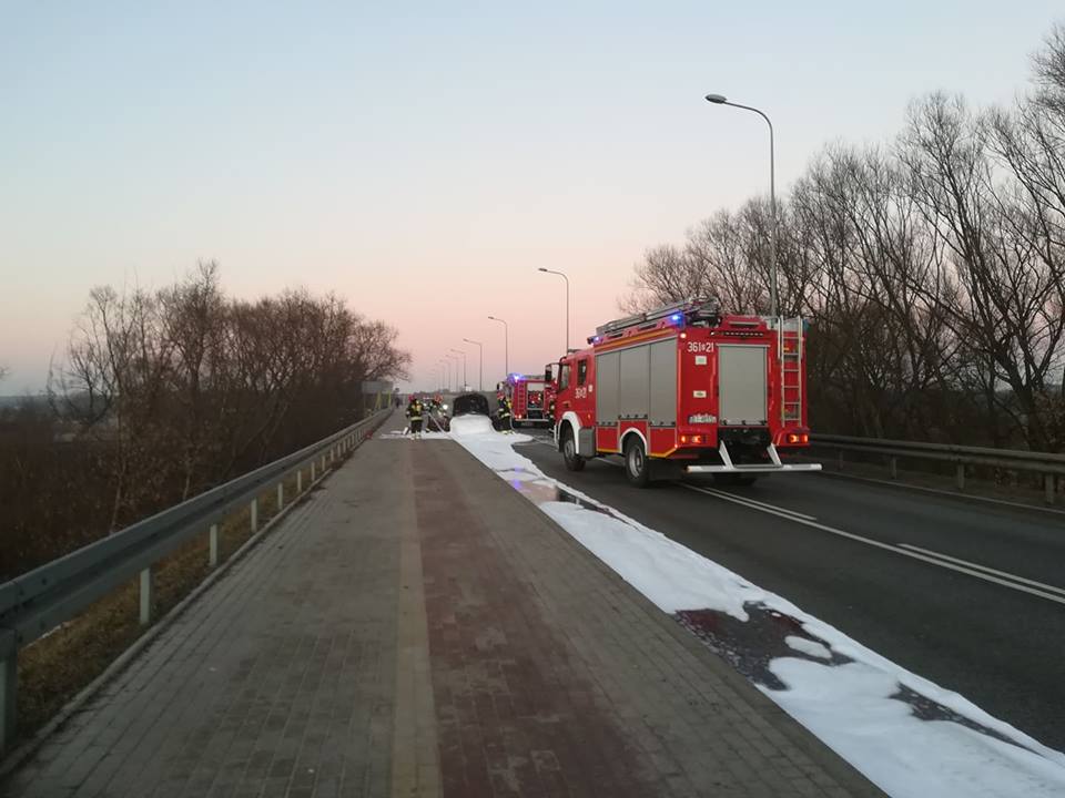 Samochód zapalił się na nowym moście (FOTO)