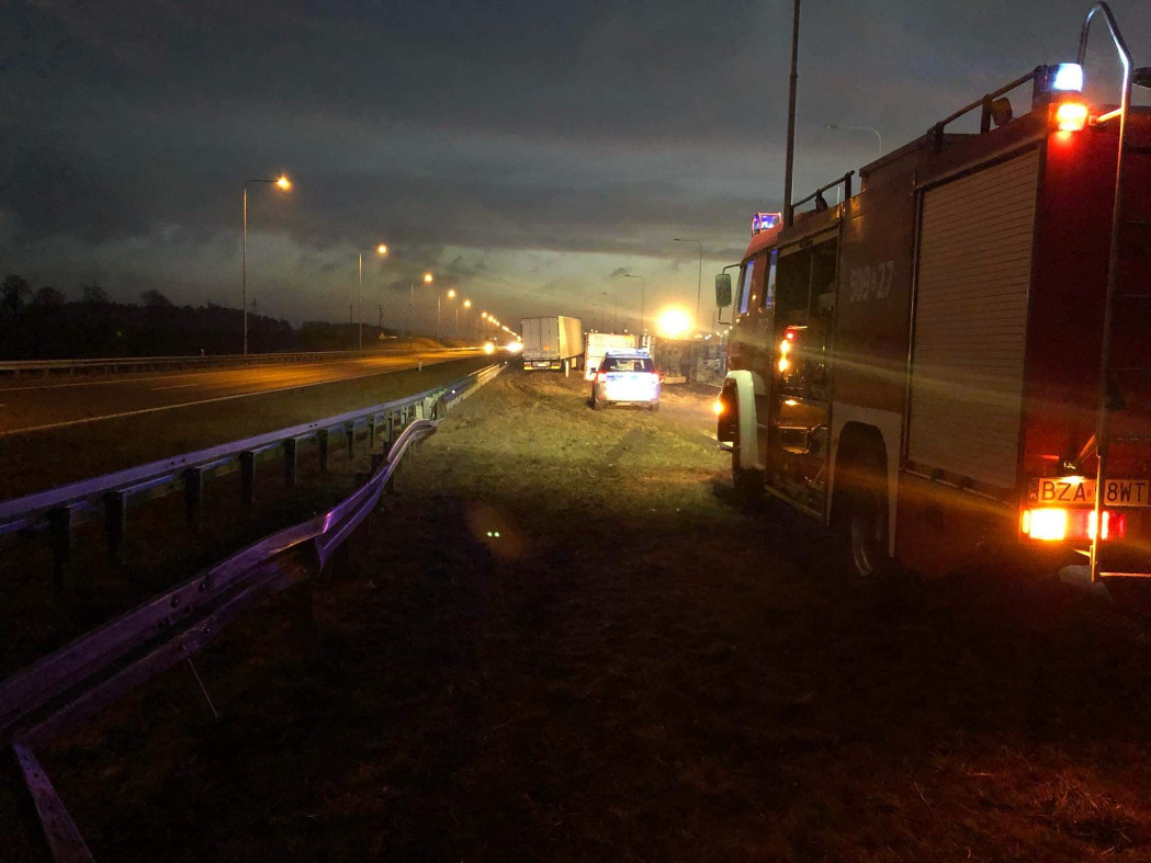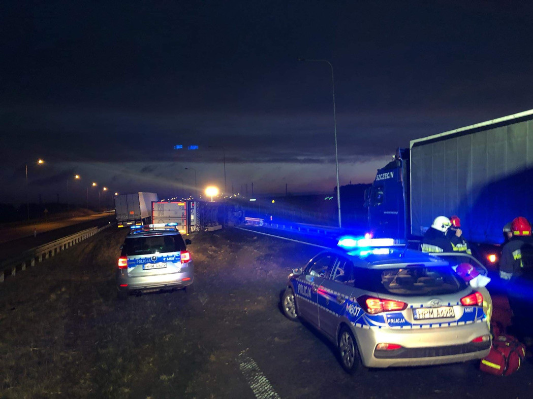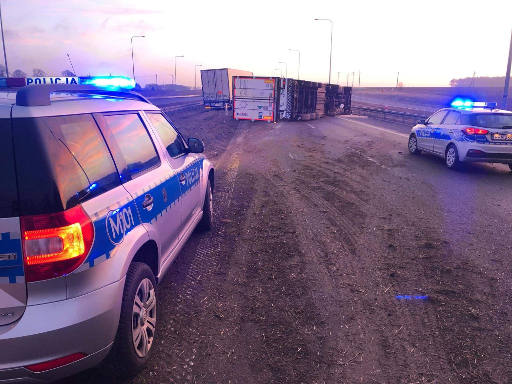 TIR wywrócił się blokując dwa pasy ruchu. Na chwilę obecną nie wiadomo w jakich okolicznościach doszło do tego zdarzenia. Kierowca ciężarówki był trzeźwy. Nic mu się nie stało.