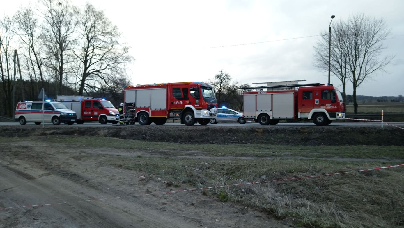 O godzinie 13.59 policja dostała o zdarzeniu drogowym na DK 8 w miejscowości Poświętne. Ze wstępnych ustaleń wynika, że kierujący pojazdem Mercedes na łuku drogi zjechał na lewa stronę i doprowadził do zdarzenia z pojazdem ciężarowym.