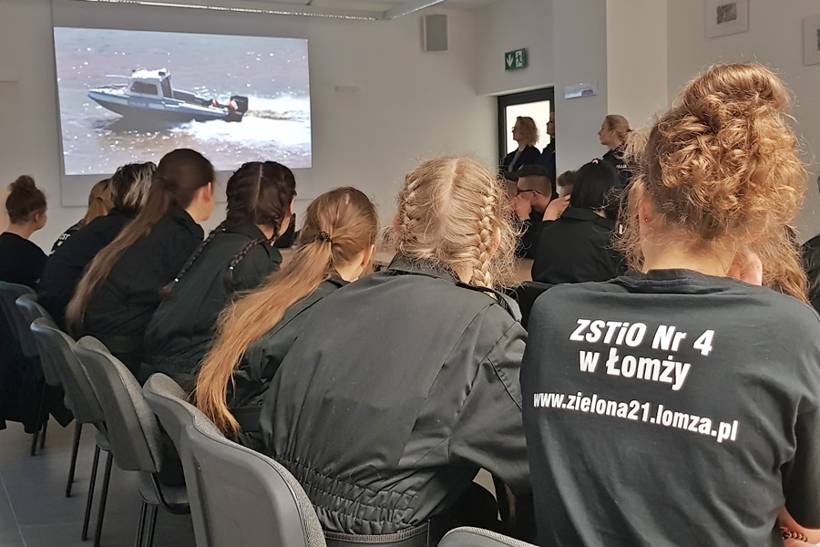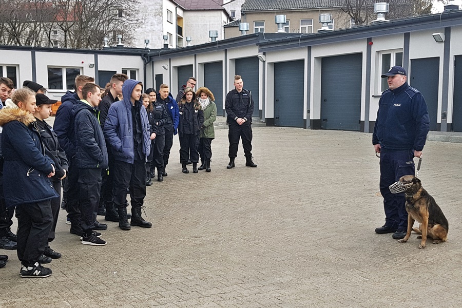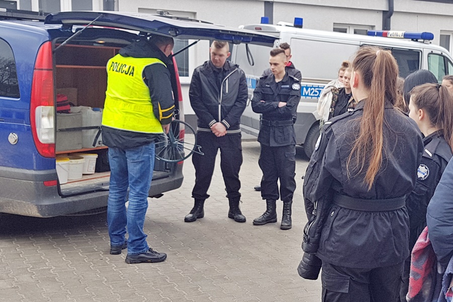 W ramach „Dnia otwartego”, uczniowie klas policyjnych z Zespołu Szkół Technicznych i Ogólnokształcących nr 4 w Łomży odwiedzili dziś policjantów pracujących w Komendzie Miejskiej Policji w Łomży. Była to bardzo dobra okazja, aby poznać codzienną pracę policjantów. O realizowanych zadaniach służbowych opowiadał między innymi technik kryminalistyki, przewodnik psa służbowego i dzielnicowa. Młodzież mogła obejrzeć wnętrze radiowozu wykorzystywanego do obsługi zdarzeń drogowych i porozmawiać o wykonywanej pracy z policjantami ruchu drogowego. Mundurowi chętnie dzielili się doświadczeniami z przebiegu swojej wieloletniej służby i zachęcali do podjęcia decyzji o wstąpieniu w swoje szeregi. Etapy rekrutacji oraz warunki jakie musi spełnić kandydat, aby zostać funkcjonariuszem Policji przedstawili natomiast specjaliści z Wydziału Prezydialnego Kadr i Szkolenia, a także policyjni profilaktycy.
