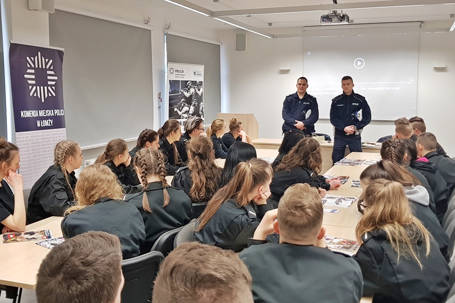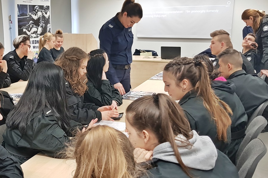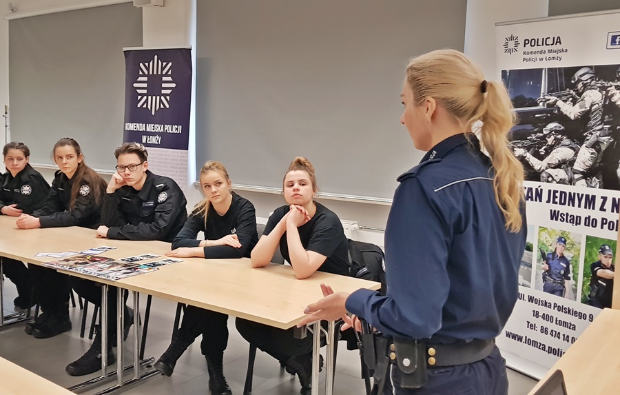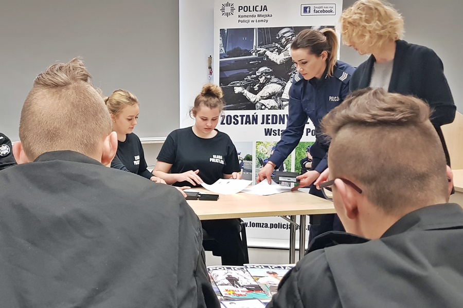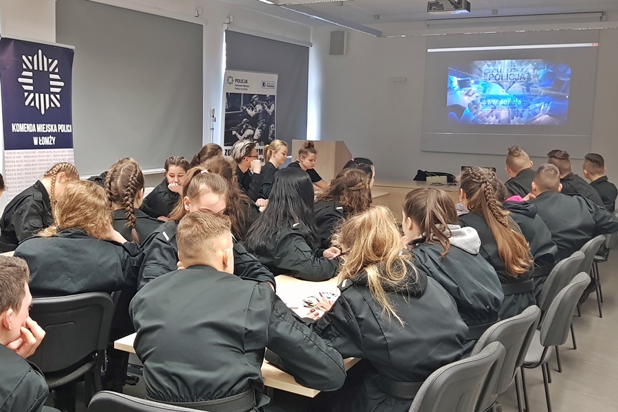 Uczniowie klas policyjnych gościli dziś w murach Komendy Miejskiej Policji w Łomży. Funkcjonariusze opowiadali o swoim zawodzie i zachęcali do wstąpienia w szeregi policyjnej formacji.
