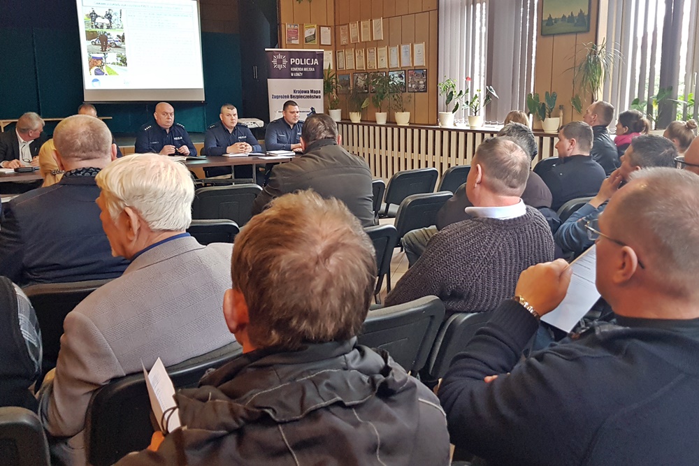 Funkcjonariusze Komendy Miejskiej Policji w Łomży spotkali się wczoraj z mieszkańcami gminy Piątnica, aby porozmawiać o bezpieczeństwie. Spotkanie miało na celu diagnozę i weryfikację zagrożeń wskazywanych na Krajowej Mapie Zagrożeń Bezpieczeństwa. Debacie przewodniczył Komendant Miejski Policji w Łomży - nadkomisarz Marek Sienkiewicz. Obecni byli także Naczelnicy Wydziałów Ruchu Drogowego i Prewencji oraz funkcjonariusze pełniący służbę w Posterunku Policji w Piątnicy.
