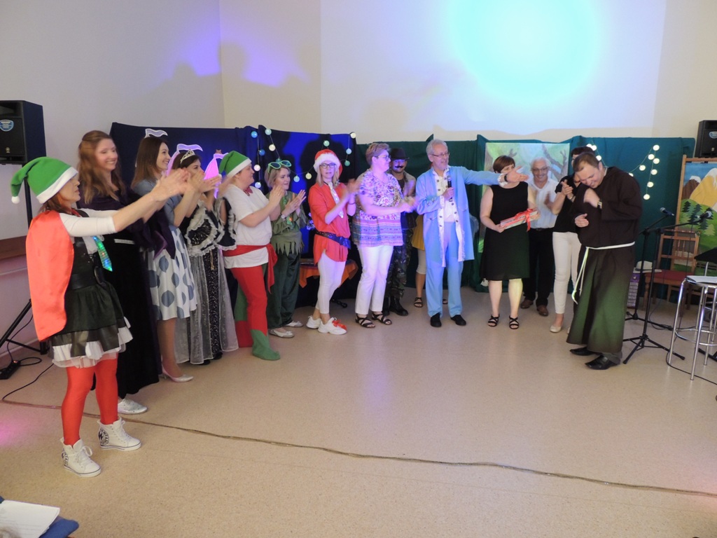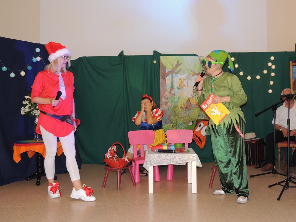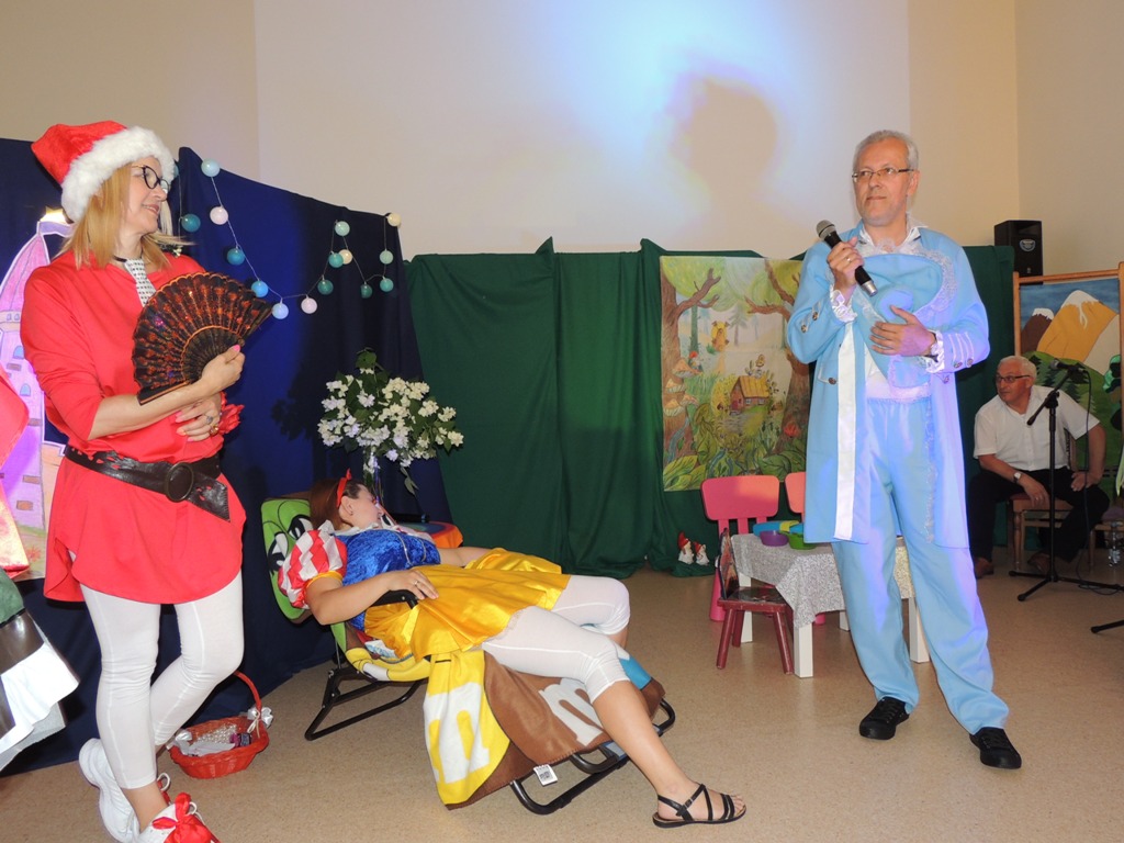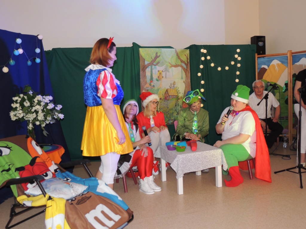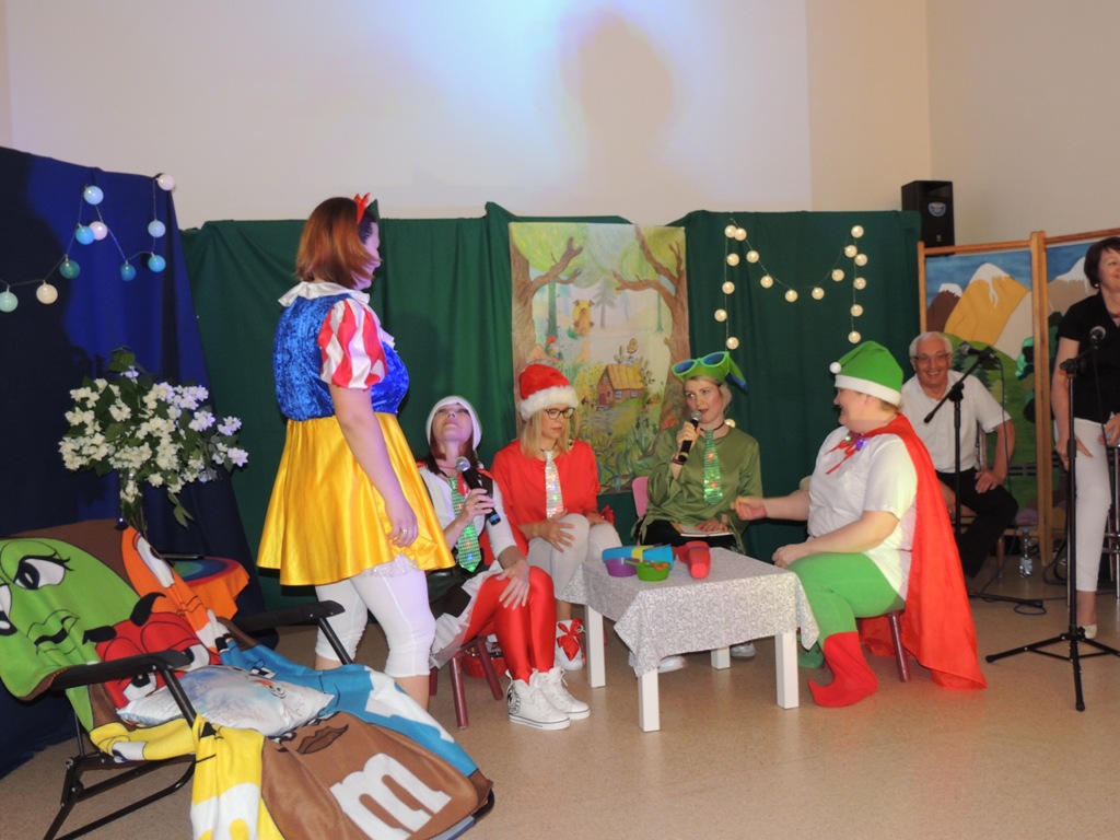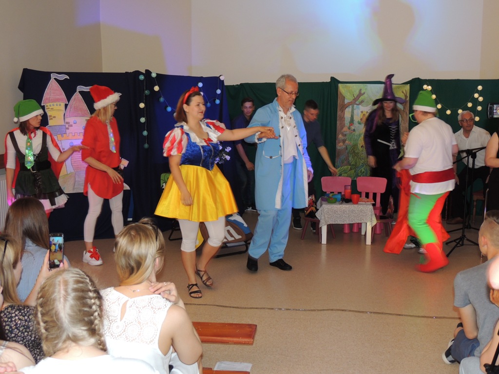 Nauczyciele Zespołu Szkół Technicznych i Ogólnokształcących Nr 4 w Łomży wystąpili dla uczniów w zabawnej adaptacji znanej bajki o królewnie Śnieżce i (niekoniecznie siedmiu) krasnoludkach.