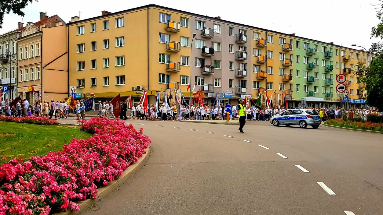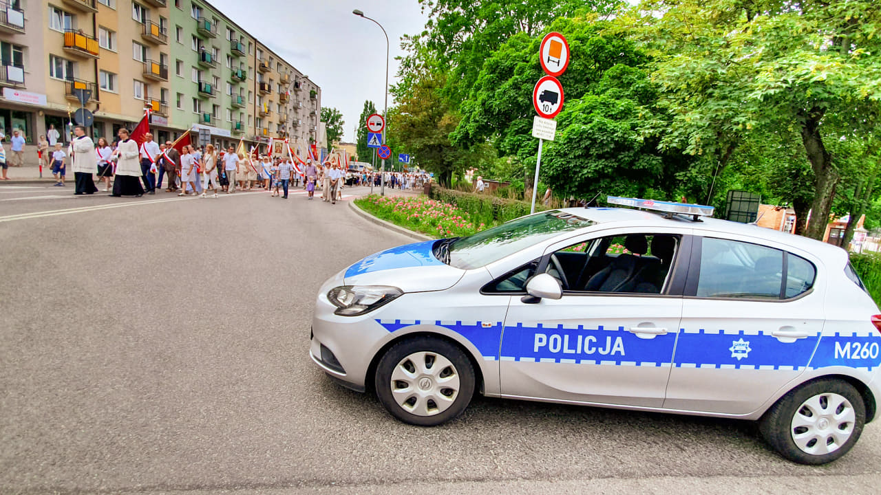 Policjanci z Komendy Miejskiej Policji w Łomży, realizując działania związane z zapewnieniem bezpieczeństwa na drogach podczas długiego, czerwcowego weekendu, zabezpieczali przemarsze procesji w pobliżu kilku łomżyńskich parafii. Funkcjonariuszy pełniących służbę motocyklami i oznakowanymi radiowozami, można było zobaczyć przy pracy zarówno na osiedlowych uliczkach, jak i na głównych ciągach komunikacyjnych miasta. Dbali oni przede wszystkim o bezpieczeństwo pieszych uczestników wszystkich uroczystości. Kierowcom, zwłaszcza tym jadącym przez Łomżę na wakacyjny wypoczynek w kierunku Mazur, pomagali sprawnie pokonywać pojawiające się czasowo utrudnienia w ruchu związane z przemieszczaniem się pochodów.