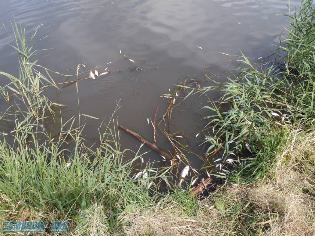Martwe ryby w zambrowskim zalewie odnaleźli wędkarze. Według świadków to najprawdopodobniej wyciek substancji chemicznej spowodował śmierć ryb w tym zbiorniku.