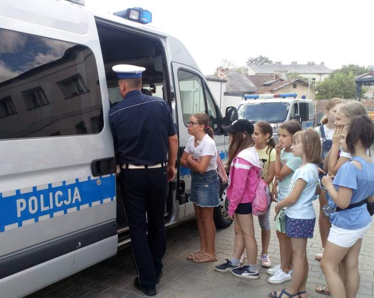 Wakacje w pełni. Nad bezpiecznym wypoczynkiem na terenie miasta i powiatu łomżyńskiego czuwają też policjanci. Wspólnie z przedstawicielami wielu instytucji odwiedzają miejsca zorganizowanych form wypoczynku, aby porozmawiać z dziećmi o bezpiecznym spędzaniu wolnego czasu. Wczoraj było nieco inaczej, bo to dzieci wypoczywające na półkoloniach w łomżyńskiej Katedrze odwiedziły funkcjonariuszy. Milusińscy wzięli udział w nietypowej lekcji bezpieczeństwa, zwiedzały komendę oraz poznawały pracę mundurowych.