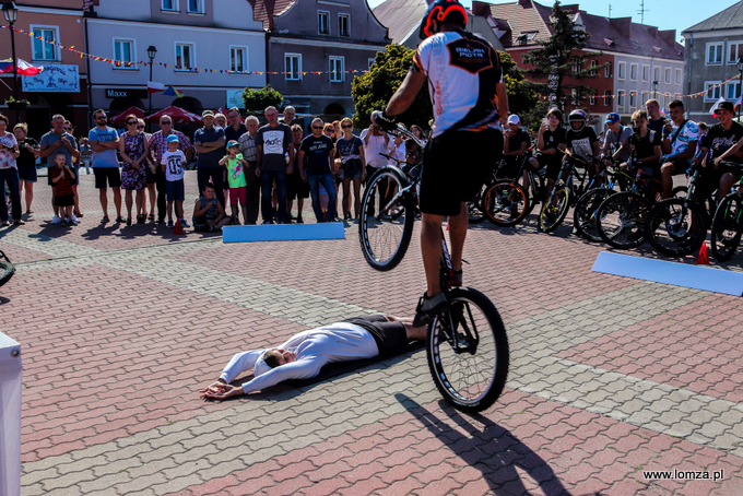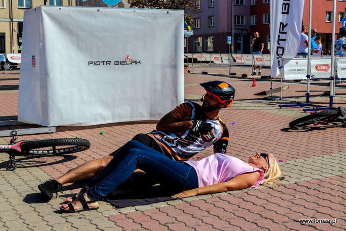 W mobilnym miasteczku rowerowym przygotowana została symulacja ruchu ulicznego ze znakami drogowymi, rondem, przejazdem kolejowym i przejściami dla pieszych. Były także ustawione różnego rodzaju przeszkody. – Chcieliśmy, by dzieci mogły pojeździć i poćwiczyć to, co spotkają w realnym ruchu drogowym – powiedział Piotr Bielak, który zaprezentował również widowisko akrobatyczne, skacząc, żonglując i wykonując na rowerze różnego rodzaju numery wspólnie z publicznością. Uczestnik telewizyjnego talent show, od 20 lat trenujący akrobatykę sportową podkreślał, że umiejętności w dużej mierze zależą od tego, jak dana osoba zaangażowana jest w trening oraz jaki ma talent. - Najrozsądniejszym podejściem jest, by nie porywać się na duży progres, tylko nastawić się na to, że cała nauka i przygoda z rowerem, czy inną pasją, trwa latami. Lepiej małymi kroczkami przemieszczać się do przodu, bezpiecznie, bez kontuzji, bardzo mocno wypracowując w sobie nawyki, niż porywać się na jakieś trudne rzeczy i mieć przez to przerwę na jakieś 3-4 miesiące, gdzie może to okazać się przerwą już na zawsze z daną dyscypliną – radził licznie zgromadzonym młodym rowerzystom Piotr Bielak.