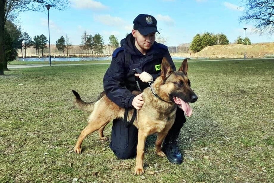 Oba psy są przygotowane do wykonywania zadań w służbie patrolowej i do tropienia przestępców – mówi starszy posterunkowy Mateusz Chaberek, dla którego Nona jest jego pierwszym psem służbowym. Funkcjonariusz w Policji służy od dwóch lat, a praca przewodnika psa służbowego jest tym o czym myślał już od dawna. – Kocham zwierzęta, mam w domu młodego owczarka niemieckiego, więc tym bardziej sprawia mi ogromną radość możliwość pracy z czworonogiem – dodaje.