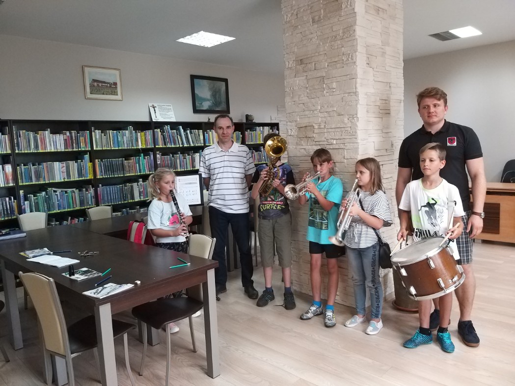 Muzyka ma magiczną moc wywoływania najszlachetniejszych emocji. Biblioteka Publiczna Gminy Łomża z/s w Podgórzu w sposób szczególny pragnie wspomóc amatorską orkiestrę dętą w Podgórzu, tak bardzo wpisaną w kulturalny krajobraz regionu. W związkuz powyższym Biblioteka realizuje projekt ze środków pozostających w dyspozycji Dyrektora Narodowego Centrum Kultury w ramach programu Kultura – Interwencja 2019 pod nazwą „I wszystko gra – edukacja orkiestrowa w Gminie Łomża”. Działania projektu skierowane są przede wszystkim do dzieci i młodzieży. Pięcioro dzieci z terenu Gminy Łomża systematycznie i z wielkim zaangażowaniem ćwiczy grę na instrumentach dętych: trąbkach sakshornie, klarnecie i perkusji. Ponadto szlifują trudną sztukę odczytu i zapisu nutowego utworów.