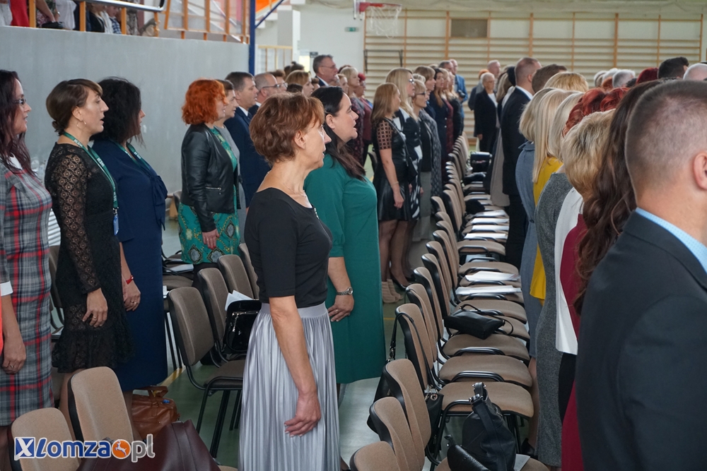Miejskie obchody Dnia Edukacji Narodowej obyły się w czwartek (10.10) w Hali Sportowej im. Olimpijczyków Polskich przy Szkole Podstawowej nr 9 w Łomży. Wydarzenie było okazją do podsumowania minionego oraz rozmów o wyzwaniach trwającego roku szkolnego, jak również docenienia trudu i wysiłku wkładanego w edukację dzieci. Trzydziestu czterech pracowników łomżyńskiej oświaty odebrało okolicznościowe nagrody przyznane przez prezydenta Łomży Mariusza Chrzanowskiego.