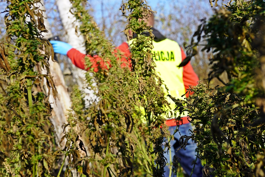 W wyniku dalszych czynności, funkcjonariusze ujawnili także nielegalne uprawy konopi. Znajdowały się one na obszarze trudnodostępnego kompleksu leśno – bagiennego w powiecie łomżyńskim. Policjanci zabezpieczyli łącznie blisko 200 sztuk tych roślin.