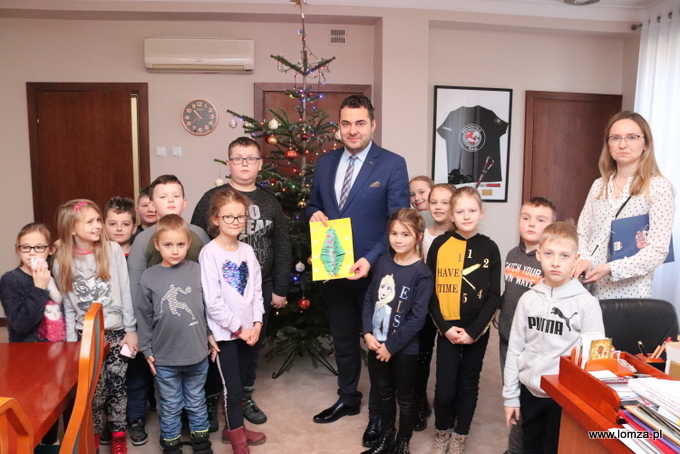 Na zaproszenie prezydenta Mariusza Chrzanowskiego do Urzędu Miejskiego przybyły dzieci z II klasy Szkoły Podstawowej nr 1 w Łomży. Włodarz miasta opowiedział młodym łomżanom o kwestiach związanych z funkcjonowaniem samorządu oraz wręczył im upominki składając najlepsze życzenia z okazji zbliżających się Świąt Bożego Narodzenia.