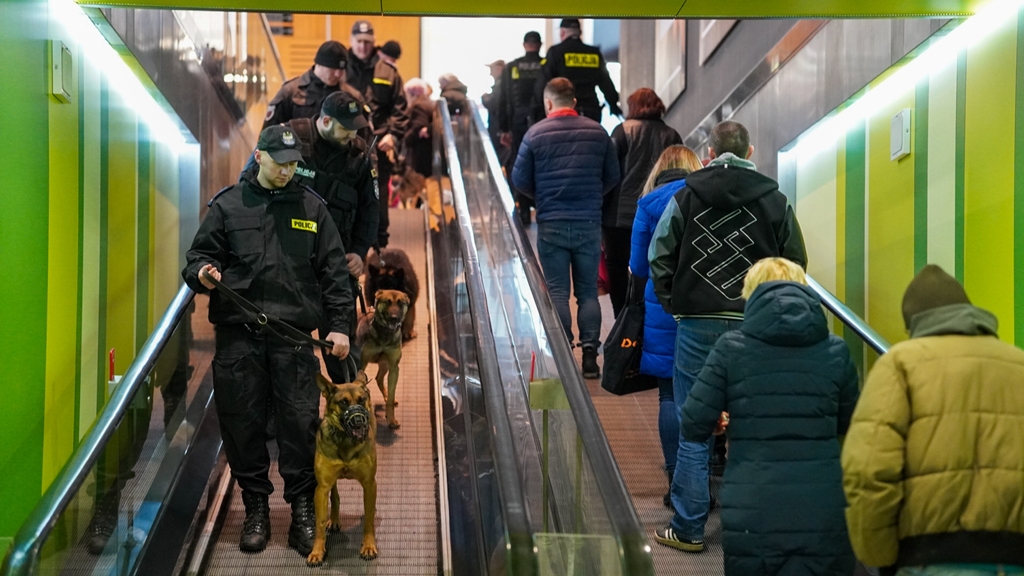 Przewodnicy psów służbowych z Łomży, Wysokiego Mazowieckiego i Bielska Podlaskiego wraz ze swoimi czworonogami, ćwiczyli dziś na terenie Parku Jana Pawła II oraz jednej z łomżyńskich galerii handlowych. W ramach cyklu szkoleniowego psy patrolowo–tropiące utrzymują swoją sprawność użytkową oraz doskonalą umiejętności nabyte w służbie. Lokalizacja ćwiczeń organizowanych przez policjantów dotyczy między innymi miejsc, w których dochodzić może do zakłóceń porządku publicznego, wykroczeń czy przestępstw. Celem takich treningów, oprócz praktycznych ćwiczeń, jest także połączenie ich z oddziaływaniem prewencyjnym oraz czuwaniem nad bezpieczeństwem mieszkańców miasta.