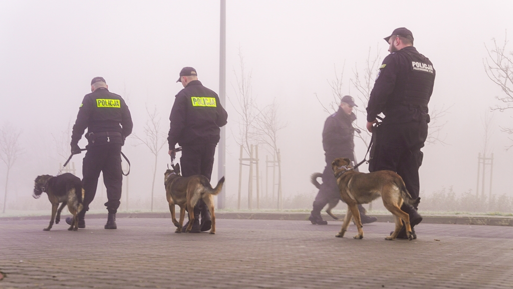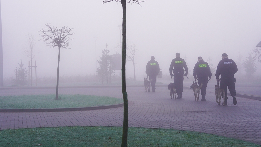 Dziś przed południem przewodnicy policyjnych psów z Łomży, Wysokiego Mazowieckiego i Bielska Podlaskiego ćwiczyli ze swoimi czworonożnymi partnerami. Głównym zadaniem takich szkoleń jest podnoszenie kwalifikacji zawodowych opiekunów, utrzymanie sprawności psów służbowych, praktyczne doskonalenie umiejętności wcześniej nabytych oraz działanie prewencyjne na terenie miasta.