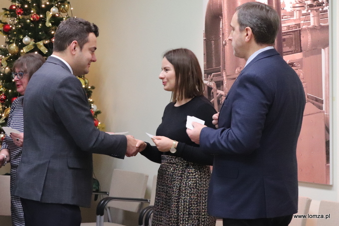 Przedstawiciele władz miasta wzięli również udział w spotkaniu wigilijnym zorganizowanym na terenie Miejskiego Przedsiębiorstwa Komunikacji. - MPK jest firmą, która jednoczy nasze społeczeństwo. Pracownicy MPK także odnajdują siebie w innych rolach i często możemy ich zauważyć przy różnych akcjach, które są w naszym mieście realizowane we współpracy ze stowarzyszeniami, czy spółkami miejskimi. To pokazuje, że oblicze MPK w Łomży ma wymiar niezwykle nowoczesny, dostosowany do współczesnych czasów – powiedział w swoim wystąpieniu prezydent Mariusz Chrzanowski, dziękując załodze "empeków" za bezpieczne przewożenie pasażerów i składając im najlepsze życzenia z okazji Świąt Bożego Narodzenia.