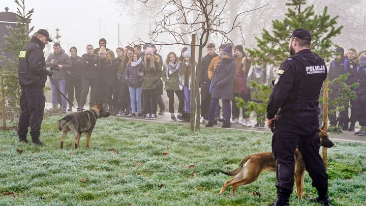 Uczniowie klas policyjnych z łomżyńskiej „Budowlanki” uczestniczyli w ćwiczeniach przewodników psów służbowych i poznawali tajniki pracy z czworonożnymi funkcjonariuszami. Nietypowa lekcja cieszyła się dużym zainteresowaniem młodzieży.