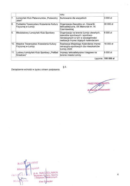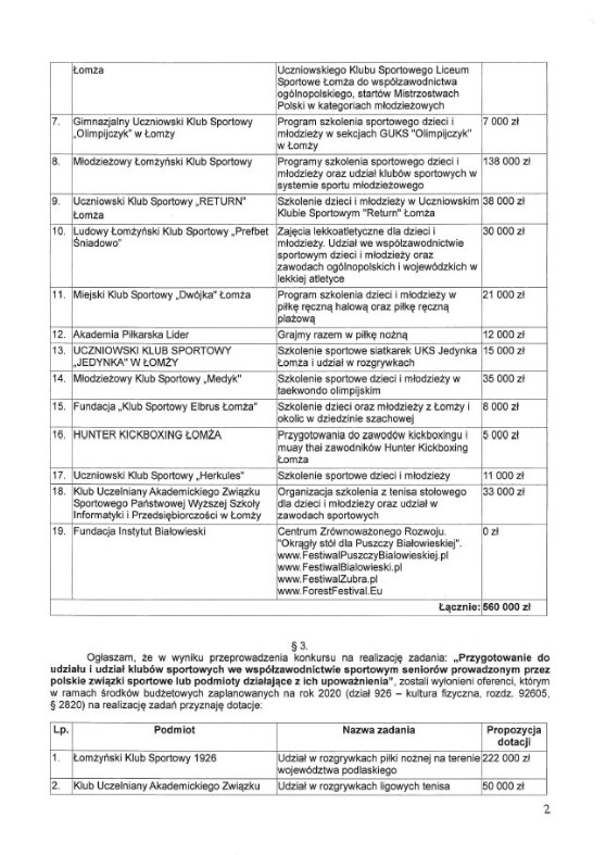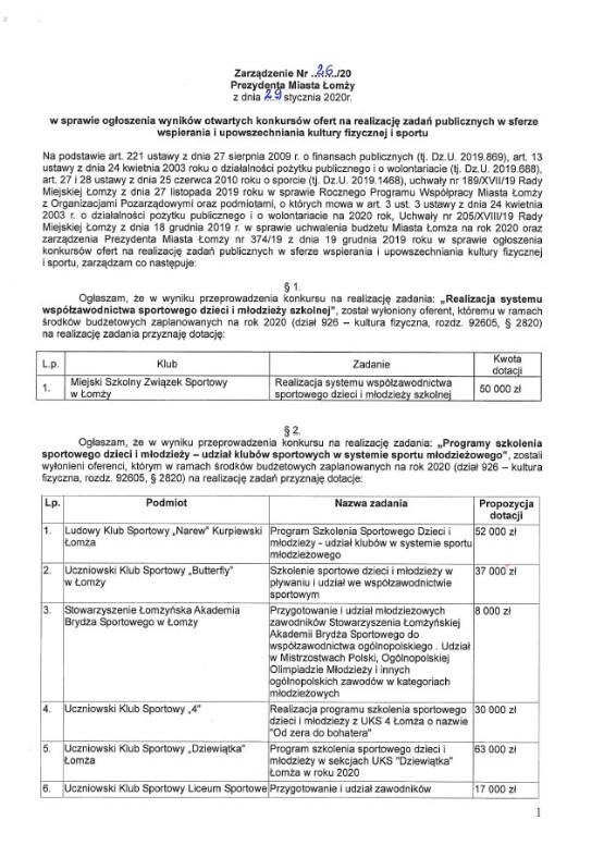 W Urzędzie Miejskim w Łomży rozstrzygnięto wyniki otwartego konkursu ofert na realizację zadań publicznych w sferze wspierania i upowszechniania kultury fizycznej i sportu w 2020 roku. Do blisko 30 klubów i stowarzyszeń trafiło łącznie 1 mln 150 tys.