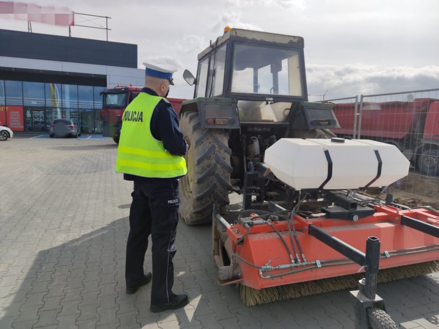 Policjanci przypominają, że ciągnik rolniczy, pojazd wolnobieżny oraz przyczepa przeznaczona do łączenia z tymi pojazdami powinny być oznakowane trójkątną tablicą wyróżniającą.