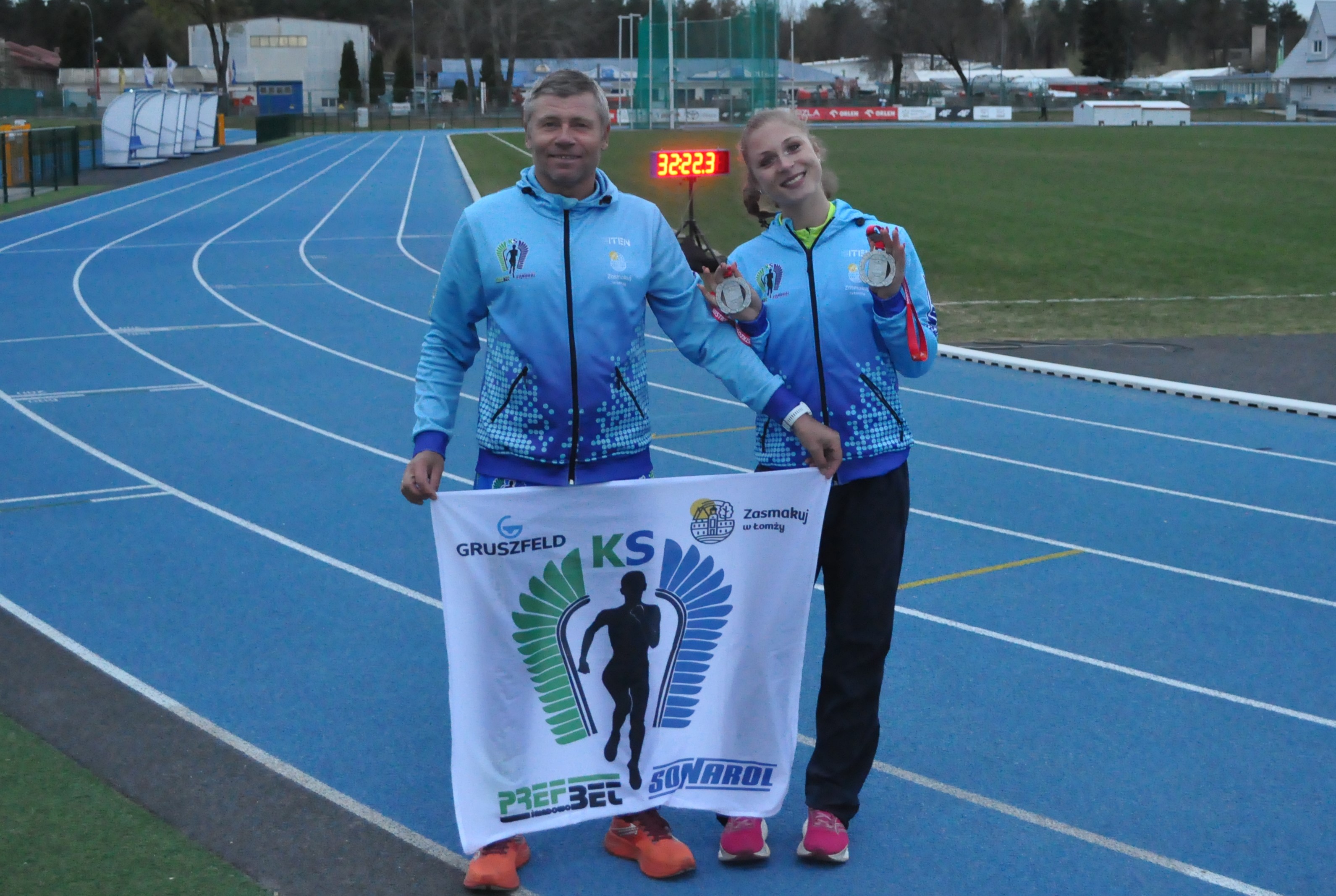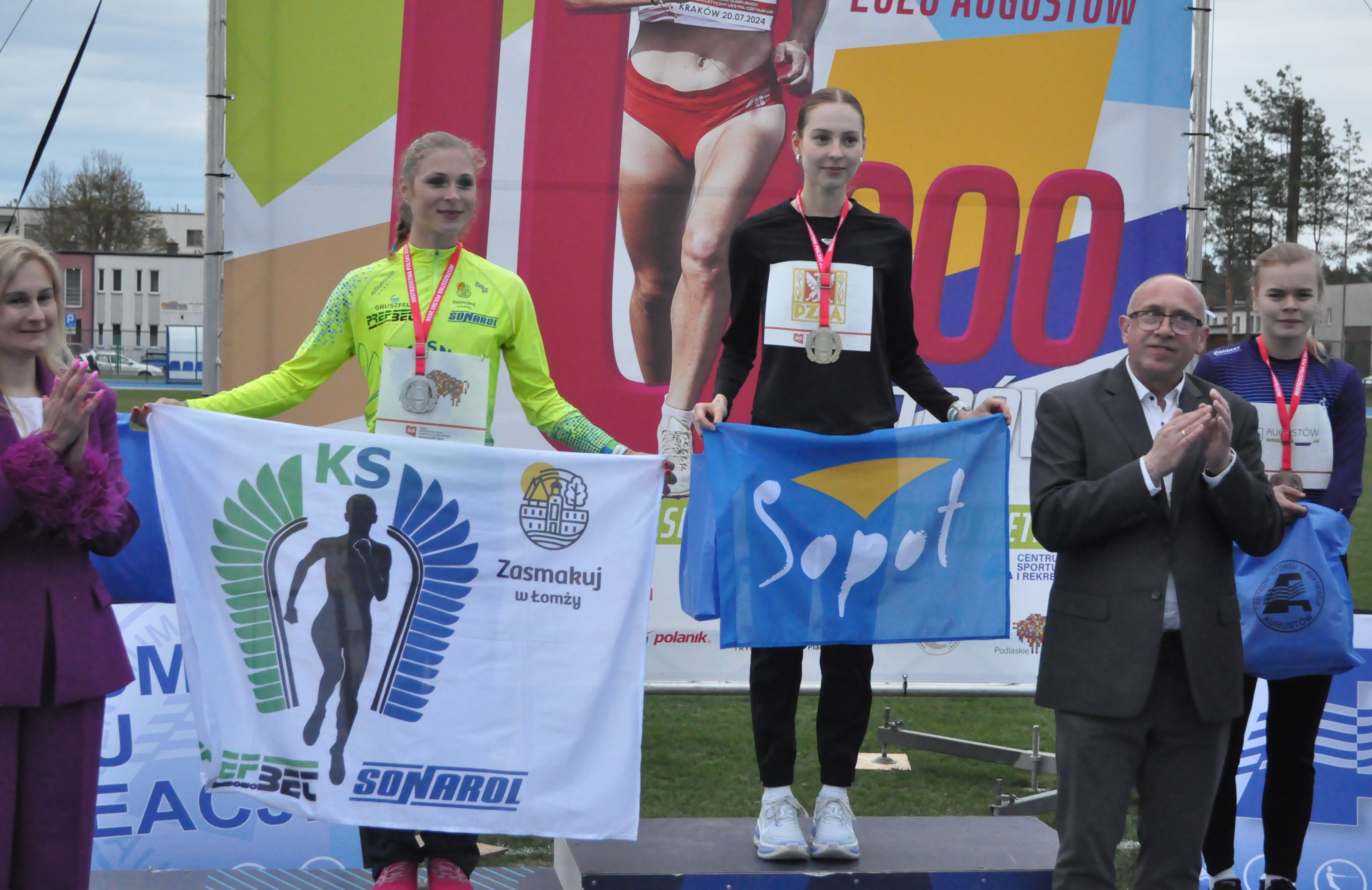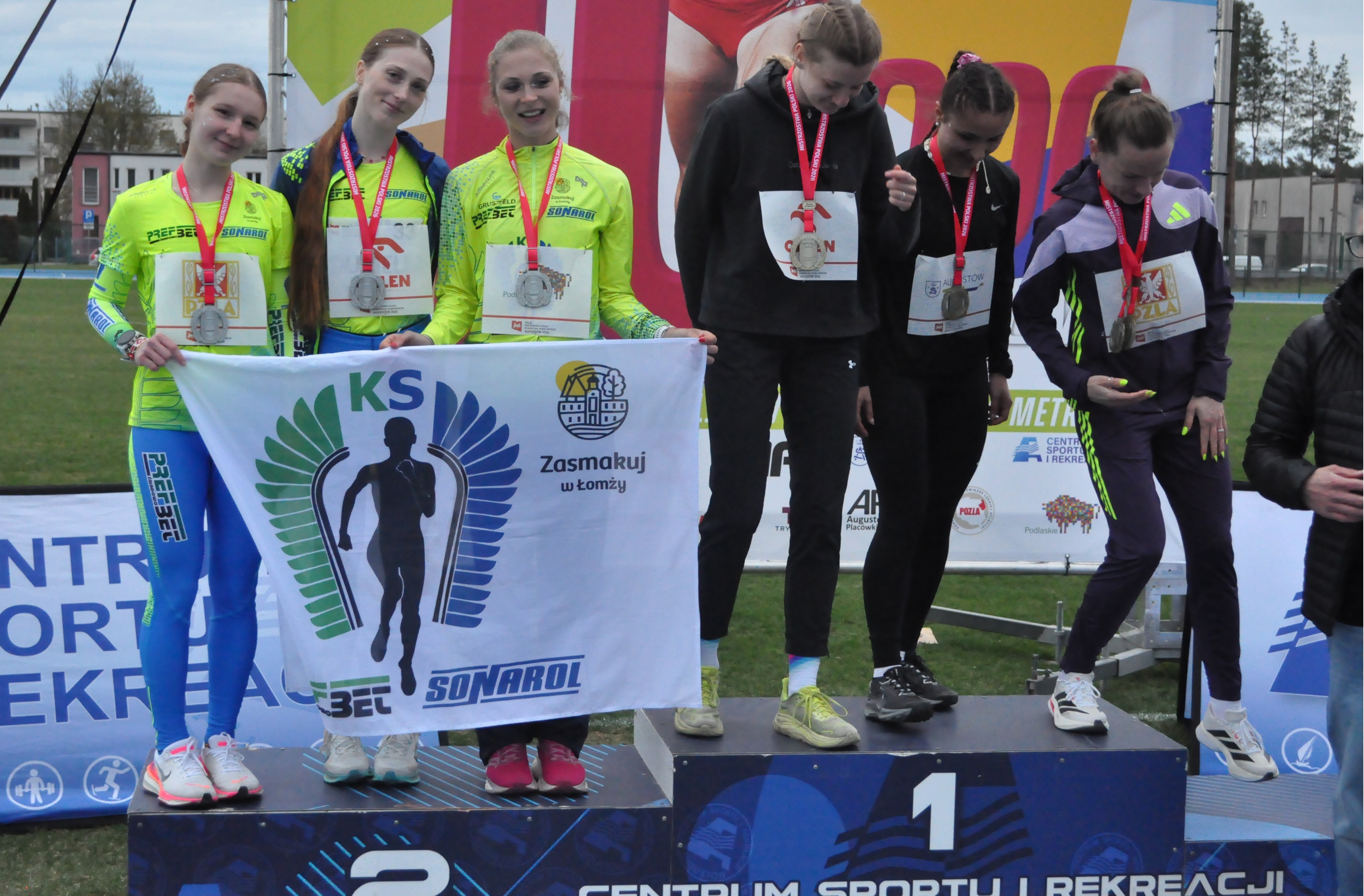 W minioną niedzielę odbyły się Mistrzostwa Polski w biegu na 10 000 metrów. Gospodarzem imprezy był podlaski Augustów . Pogoda nie była zbyt sprzyjająca, było zimno i wiał dość mocny wiatr. Na tych zawodach bardzo dobrze zaprezentowały się biegaczki Klubu Sportowego PREFBET-SONAROL Łomża, które wywalczyły dwa srebrne medale. W kategorii U23 niezawodna Martyna Krawczyńska obroniła drugie miejsce z poprzedniego roku (37:16,07) a Karolina Guska przybiegła 4ta(37:49,10). W kategorii seniorów obie zawodniczki wraz z Moniką Dubiellą (35:43,44sek) zajęły drugą lokatę w klasyfikacji drużynowej seniorów. Medale naszych pań były jedynymi na tej imprezie jakie wywalczyli reprezentanci województwa podlaskiego.