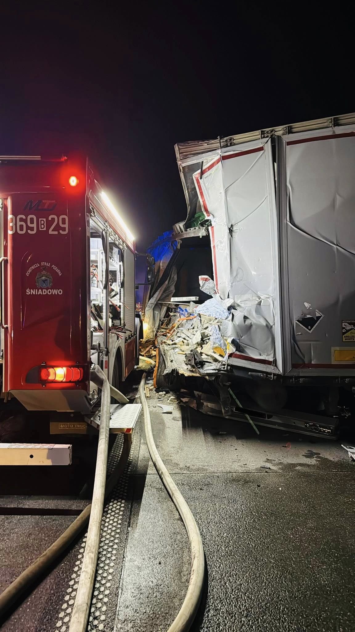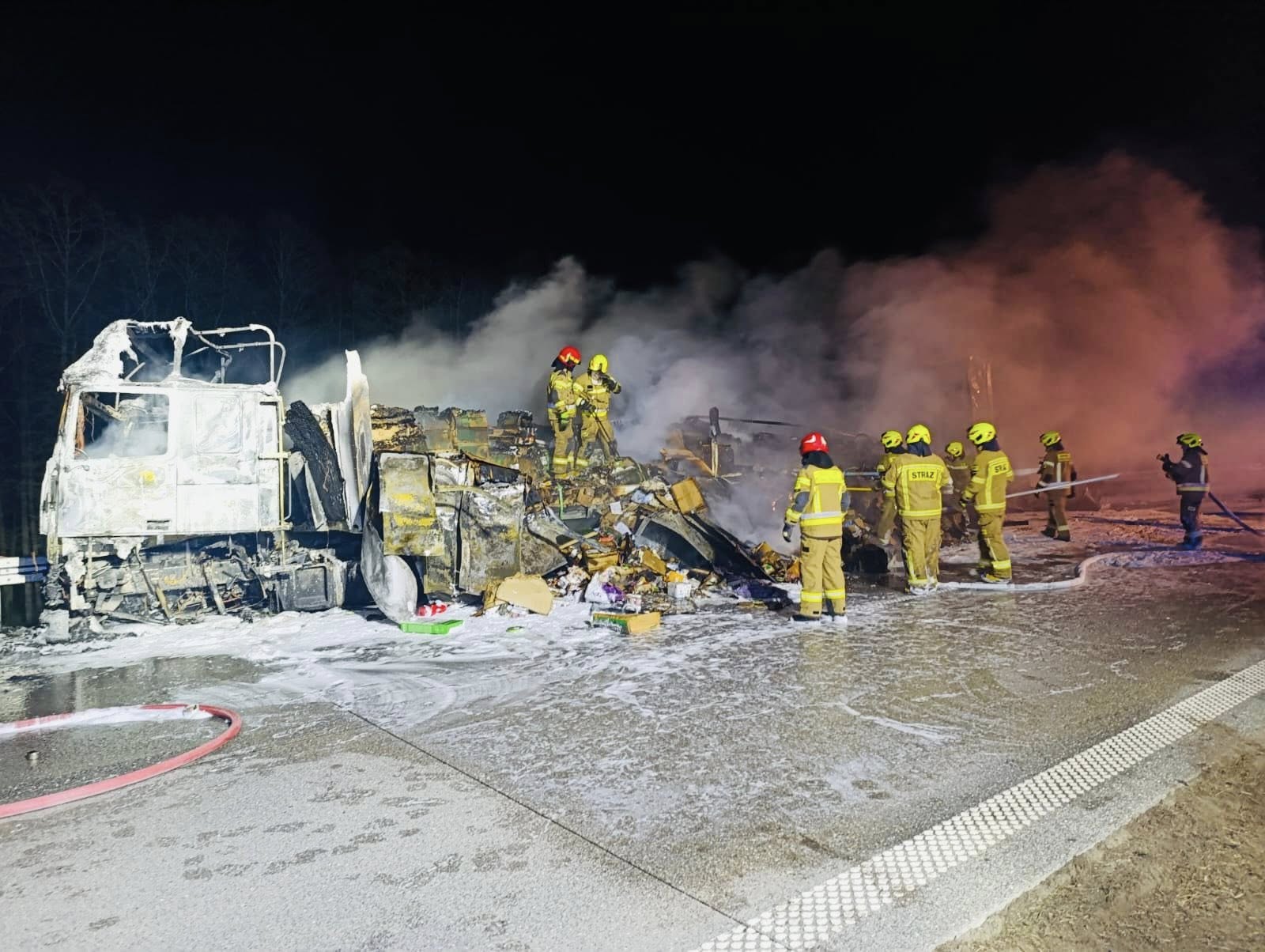 Płonące ciężarówki na S61 pod Łomżą – trasa całkowicie sparaliżowana [FOTO]