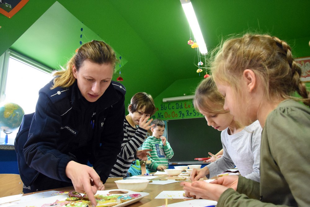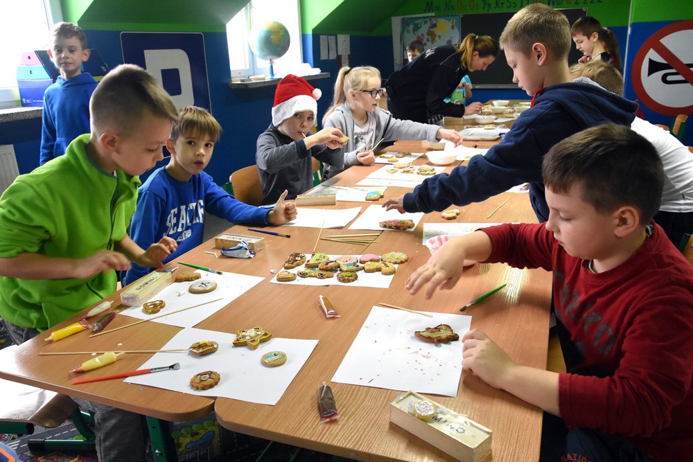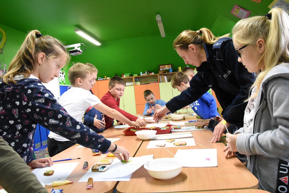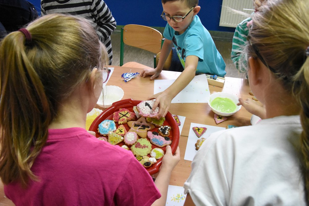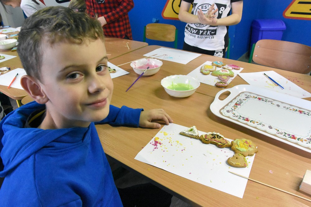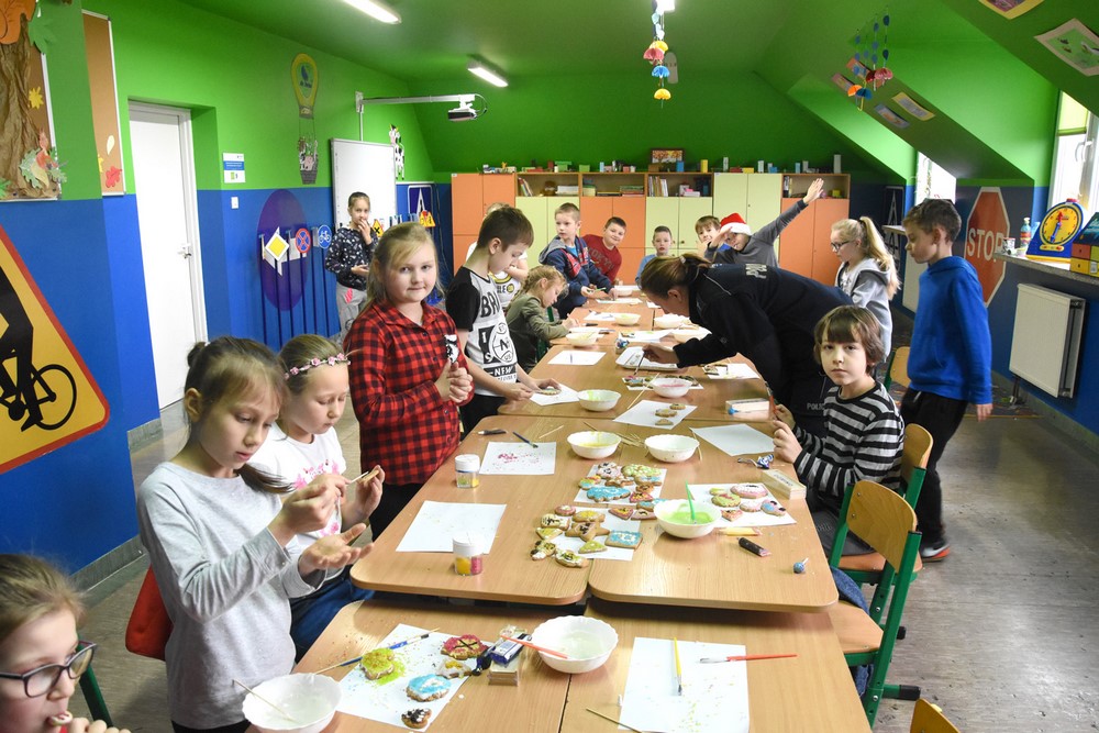 Po teorii, przyszła pora na część praktyczną. W czasie zajęć, z racji zbliżających się świąt Bożego Narodzenia, uczniowie mieli za zadanie ozdobić pierniki. Ale żeby połączyć dobrą zabawę z nauką, dzieci musiały ozdobić je tak, aby kojarzyły się ze znakami drogowymi.