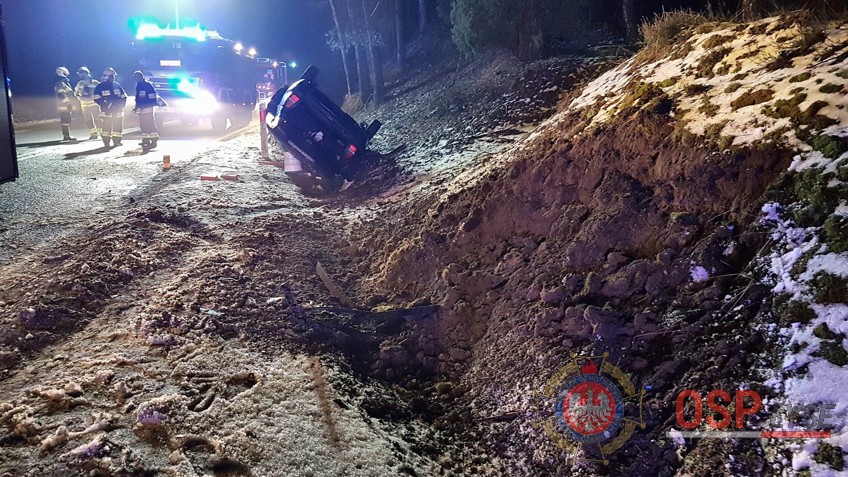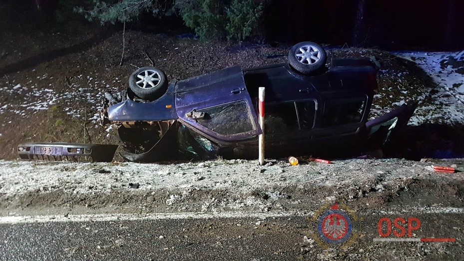 Dachowanie za Nowogrodem. Jedna osoba w szpitalu (FOTO)
