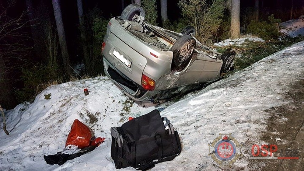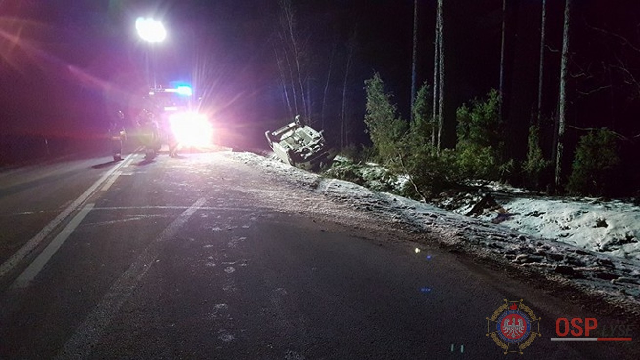 Do zdarzenia doszło na odcinku Kuzie- Łyse. Kierowcy i pasażerowi nic się nie stało i o własnych siłach opuścili auto. Ze wstępnych ustaleń policji kierowca nie dostosował prędkości do warunków panujących na drodze. Na łuku jezdni auto wpadło do rowu, a następnie dachowało.