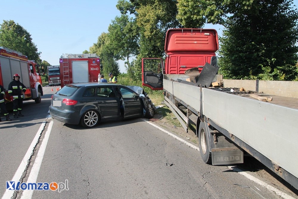 Około godziny 8.40 na DW 677 za Konarzycami doszło do wypadku z udziałem osobowki i tira. Kobieta kierujaca Audi była zakleszczona w pojeździe. Dwie osoby z osobowki trafily do szpitala - kierujaca i 12 letnie dziecko. Ruch na miejscu zdarzenia w chwili obecnej odbywa się wahadłowo. Na miejscu pracują policjanci i słuzby ratunnkowe.
