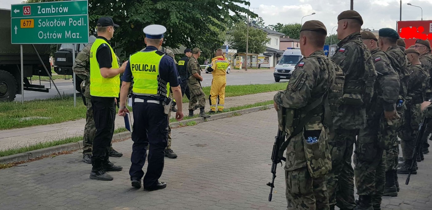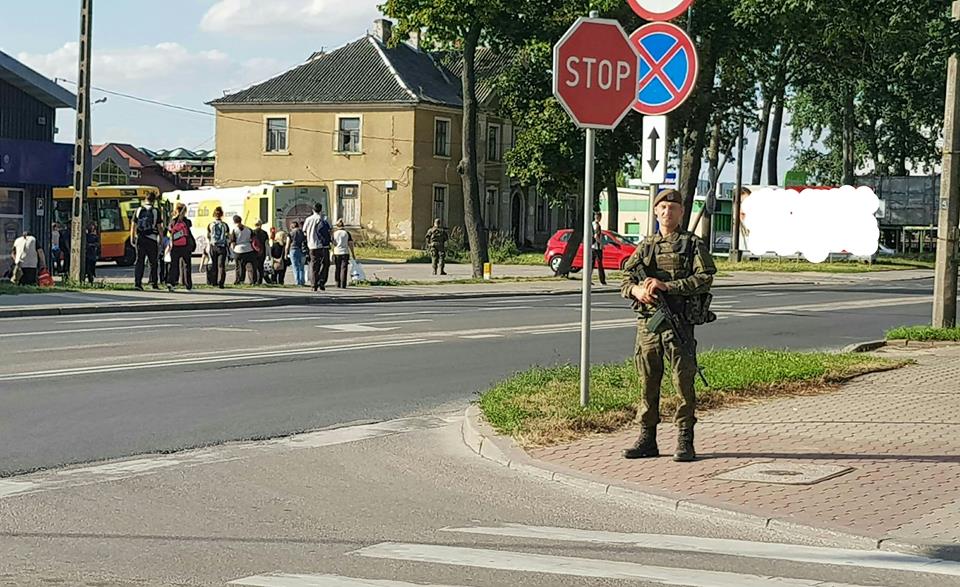 Aleja Legionów jest całkowicie zablokowana. Na miesjcu są policjanci, strażacy, ratownicy medyczni oraz żołnierze z WOT.