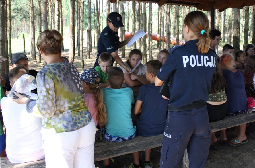 Policyjni profilaktycy z Łomży, razem z leśnikiem, strażakiem i przedstawicielem sanepid - u odwiedzili uczestników kolonii wypoczywających w Ośrodku „Olszynka” w Olszynach na terenie gminy Piątnica. Głównym celem spotkania było omówienie i przypomnienie podstawowych zasad bezpieczeństwa podczas letniego wypoczynku. Mundurowi skoncentrowali się na bezpieczeństwie nad wodą i pomocy przedmedycznej. Młodzi słuchacze z zaciekawieniem uczestniczyli w zajęciach zorganizowanych na świeżym powietrzu. Dowiedzieli się między innymi, jak unikać zagrożeń, z którymi mogą spotkać się podczas sezonu wakacyjnego. Ponadto, policjanci omówili podstawowe zasady bezpieczeństwa na drodze, a także wskazali zasadność noszenia elementów odblaskowych, po zmroku. Wczasowicze wysłuchali porad, jak należy zachowywać się na terenach leśnych, na przykład podczas wycieczek, a także otrzymali fachowy instruktaż na wypadek pożaru. Z ogromnym zainteresowaniem wysłuchali o szkodliwości środków odurzających i o pierwszej pomocy przedmedycznej w takich przypadkach. W trakcie spotkania funkcjonariusze, w ramach programu Wakacyjne Pogotowie Bezpieczeństwa przeprowadzili "Grę Edukacyjną", w której należało wykazać się wiedzą z zakresu bezpieczeństwa, co w najmniejszym stopniu nie sprawiło milusińskim problemu. Szybko i trafnie wskazywali poprawne odpowiedzi, wdając się przy tym w dyskusję z prelegentami na temat szeroko pojmowanego bezpieczeństwa. Z nieco starszą młodzieżą przebywającą na obozie, mundurowi rozmawiali o planach na przyszłość i zachęcali do rozważenia możliwości wstąpienia w szeregi policyjnej formacji.
