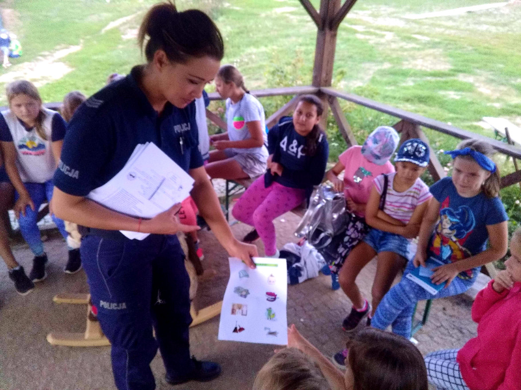 Funkcjonariusze łomżyńskiej Policji odwiedzili uczestników półkolonii w ośrodku „Quźnia Dzieciom”. Mundurowi przypomnieli o podstawowych zasadach bezpieczeństwa nad wodą w ramach akcji ,,Kręci mnie bezpieczeństwo...", a także realizowali działania wynikające z założeń programu profilaktycznego Wakacyjne Pogotowie Bezpieczeństwa.