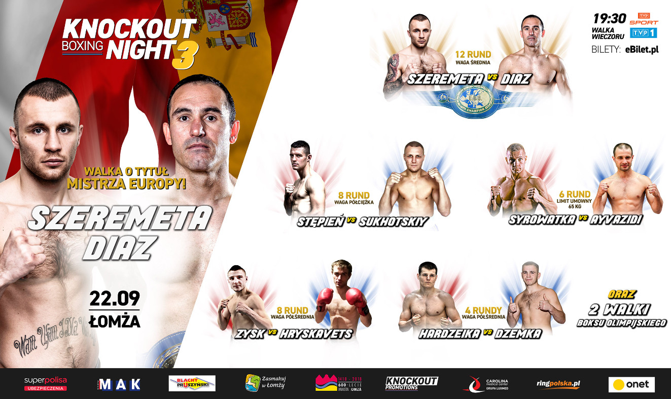 Walką wieczoru będzie pojedynek o Mistrzostwo Europy w wadze średniej, pomiędzy posiadaczem tytułu Kamilem Szeremetą a niepokonanym od 15 lat Rubenem Diazem z Hiszpanii. Organizatorzy przewidzieli 4 dodatkowe walki boksu zawodowego najbardziej utalentowanych zawodników grupy KnockOut Promotions i dwie walki boksu olimpijskiego. Walka Szeremeta vs. Diaz to jedno z najważniejszych wydarzeń bokserskich na polskiej ziemi od 10 lat!