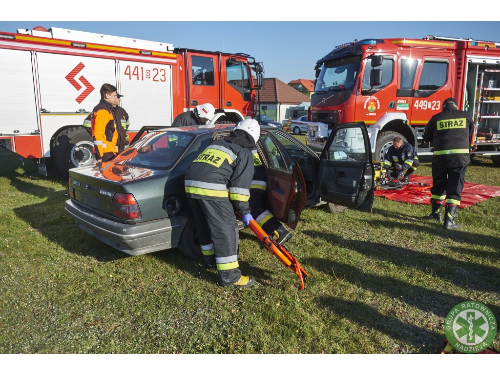 Podczas pierwszej części manewrów strażacy pod okiem instruktorów Grupy Ratowniczej Nadzieja oraz strażaków PSP, szkolili swoje umiejętności z zakresu pierwszej pomocy w przypadku zdarzenia komunikacyjnego. Na terenie przy kościele pw. Chrystusa Króla Wszechświata do ich dyspozycji były cztery pojazdy, w których było 8 poszkodowanych. Auta po tej części manewrów posłużyły druhom z OSP do ćwiczeń z zakresu ratownictwa technicznego.