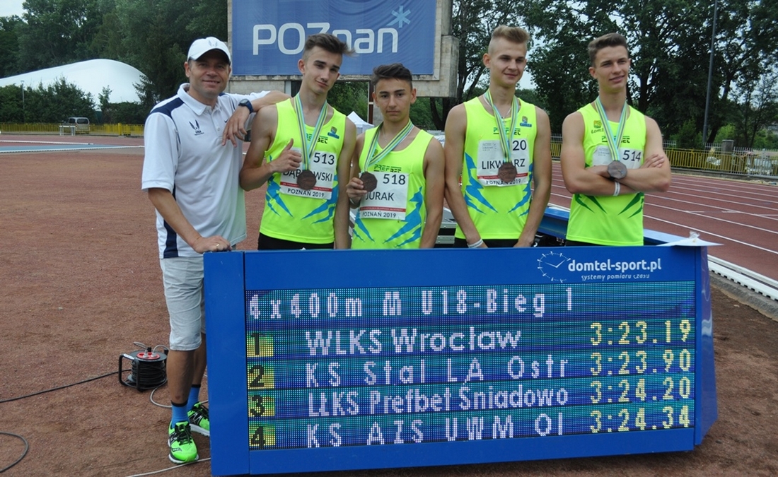 Podczas Ogólnopolskiej Olimpiady Młodzieży rozgrywanej w Poznaniu sztafeta 4x400 metrów chłopców z PREFBETU wywalczyła brązowy medal z czasem 3:24,20. Nasi zawodnicy stoczyli ciężki bój a sprawa podziału medali toczyła się do samej mety. Na szczęście rywalizacja zakończyła się dla nas pomyślnie i przyniosła upragniony medal Mistrzostw Polski. Warto w tym miejscu zaznaczyć, że jest to już dziesiąty medal Mistrzostw Polski w sztafecie 4x400 wywalczony przez zawodników z tego klubu w ciągu ostatnich 14-tu latach. Skład sztafety: Duchnowski Igor, Likwiarz Dawid, Jurak Bartosz i Dąbrowski Piotr