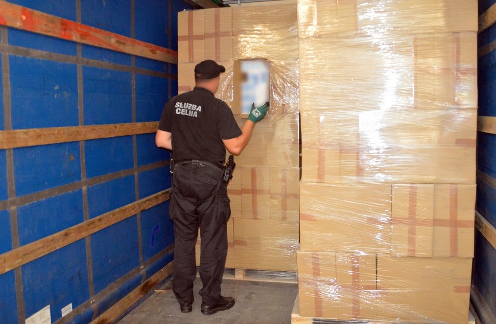 Funkcjonariusze podlaskiej KAS zatrzymali do kontroli w pobliżu polsko-litewskiej granicy w Budzisku ciężarówkę na estońskich numerach rejestracyjnych kierowaną przez 35-letniego Białorusina. Zgodnie z przedstawionymi dokumentami w naczepie tira miał znajdować się ładunek mebli. W trakcie sprawdzania towaru poprzedzonego prześwietleniem rentgenowskim okazało się, że poza sześcioma krzesłami zapakowanymi w kartonowe pudła, w naczepie znajduje się gigantyczna papierosowa kontrabanda.