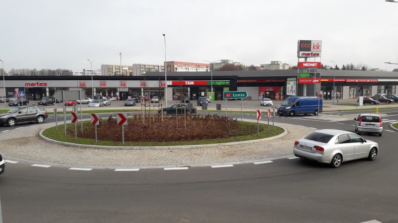 W ramach zadania wybudowano rondo, na dwóch skrzyżowaniach zainstalowano sygnalizację świetlną. Powstały też nowe chodniki, zatoki autobusowe i ścieżka rowerowa wraz z oddzieloną od drogi kładką nad rzeczką Łabna. Koszt inwestycji to 27 mln zł.