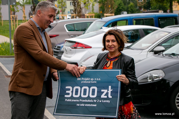 We wtorkowe (9.06.) południe po przeprowadzonej modernizacji oficjalnie została otwarta ulica Romana Dmowskiego w Łomży. Inwestycję zrealizowano przy wsparciu ze środków Funduszu Dróg Samorządowych. Na przedsięwzięciu skorzystało również pobliskie Przedszkole Publiczne nr 2, które od wykonawcy ulicy, łomżyńskiej firmy BIK-Projekt, otrzymało bon w wysokości 3 tysięcy złotych. Pieniądze te zostaną wykorzystane na zakup sprzętu sprawnościowego do przedszkolnego placu zabaw.