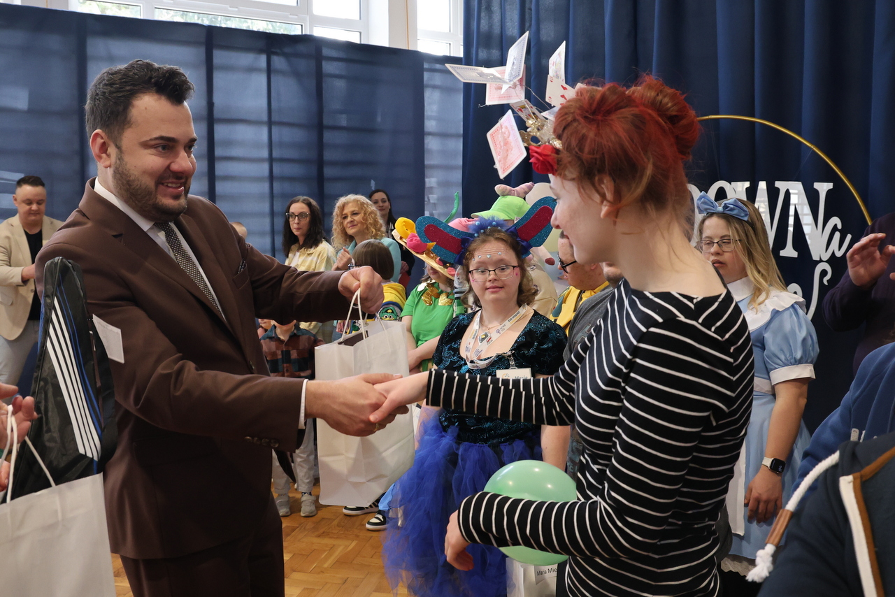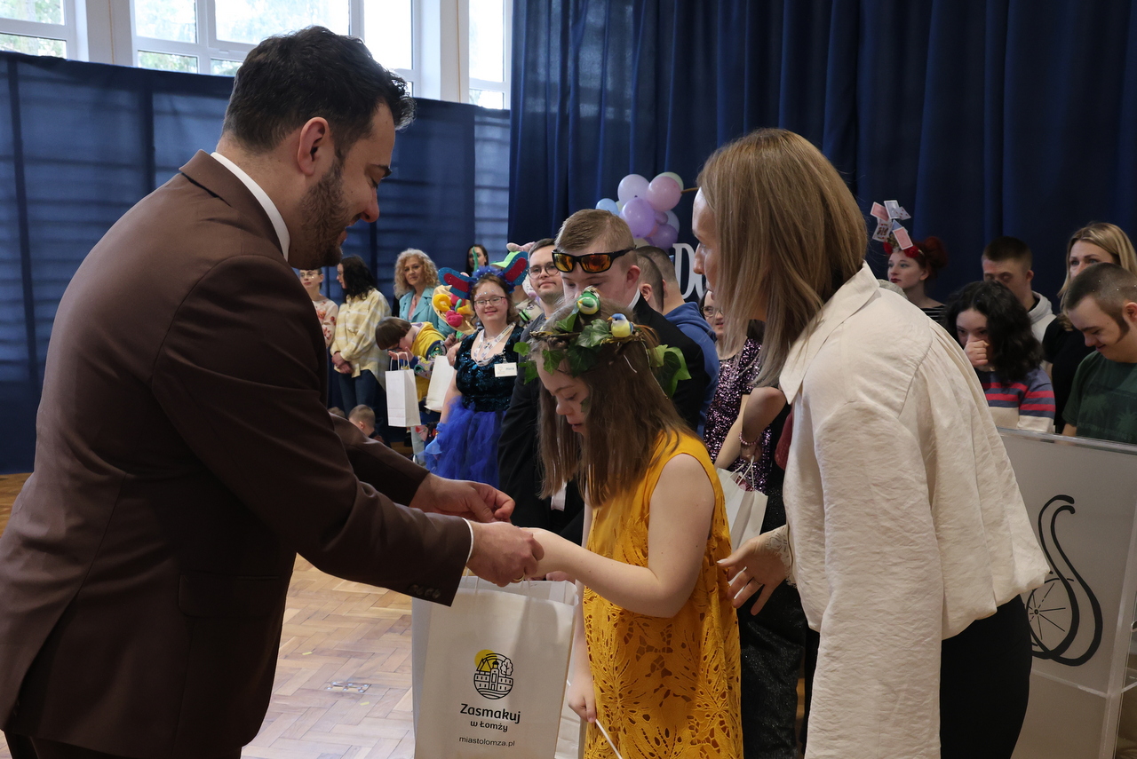 Świętowanie rozpoczęło się w Hali Kultury w Łomży, gdzie odbył się wyjątkowy pokaz mody. Na wybiegu pojawili się uczniowie, prezentując kolorowe, odważne stylizacje – pełne radości, indywidualności i dystansu do schematów. Publiczność nagradzała każdy występ gromkimi brawami, a atmosfera była niezwykle ciepła i pełna akceptacji. To wydarzenie pokazało, jak ważna jest otwartość, różnorodność i wspólne przeżywanie takich chwil.