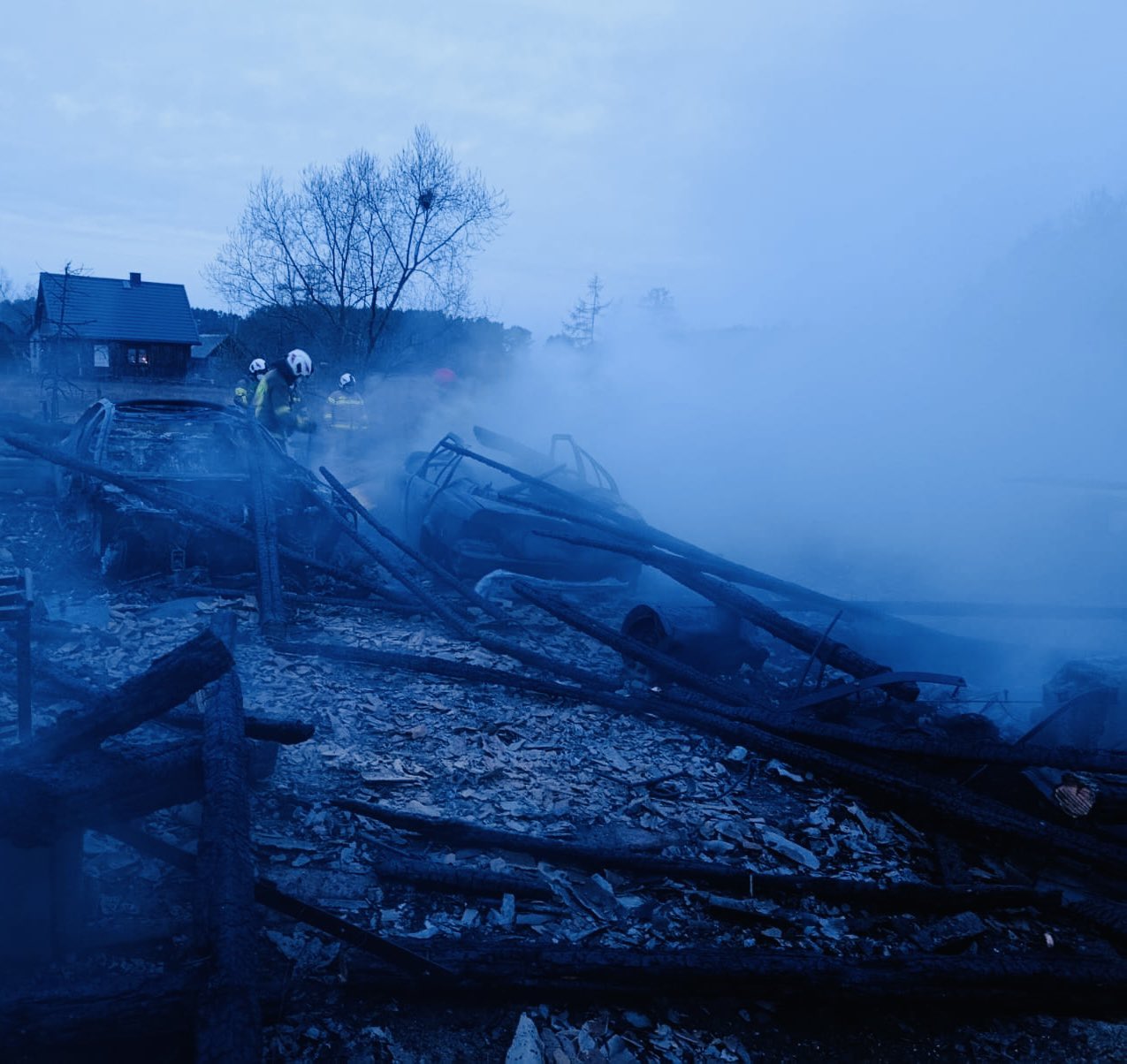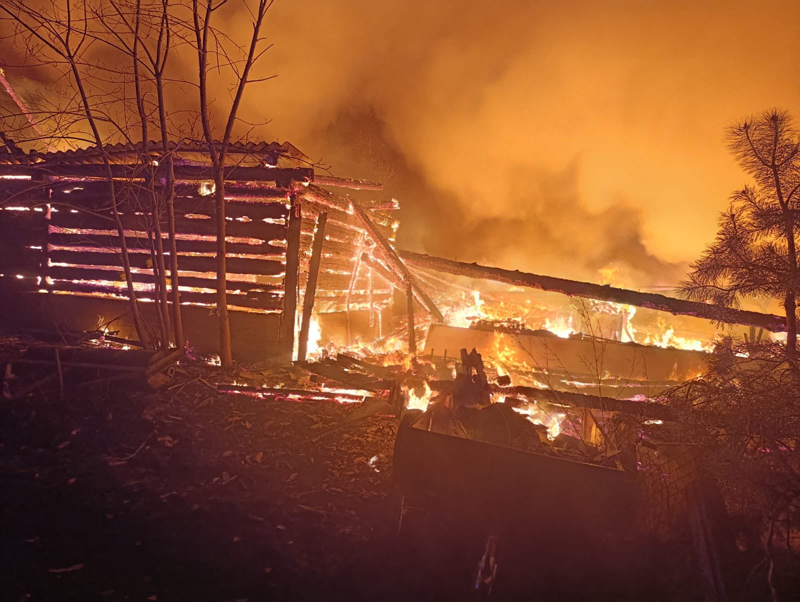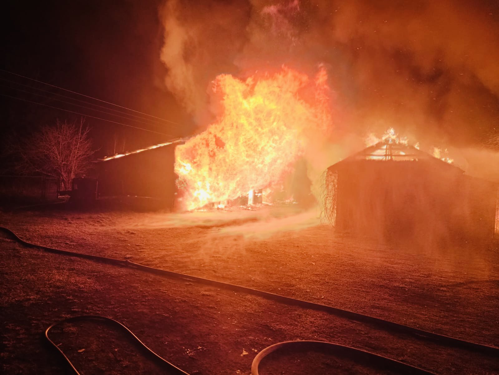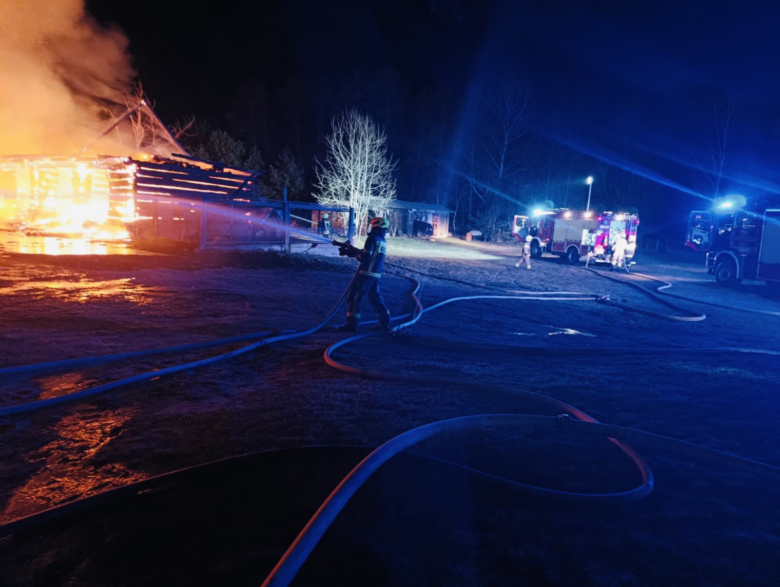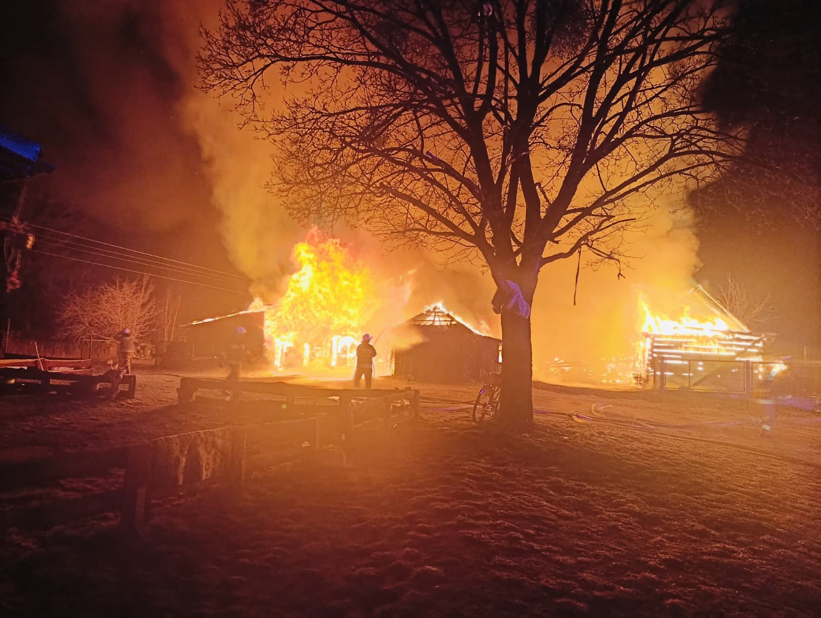 W miejscowości Siwiki, w gminie Zbójna, doszło do poważnego pożaru obejmującego kompleks drewnianych budynków gospodarczych. Ogień szybko się rozprzestrzenił, obejmując znaczną część zabudowań.
