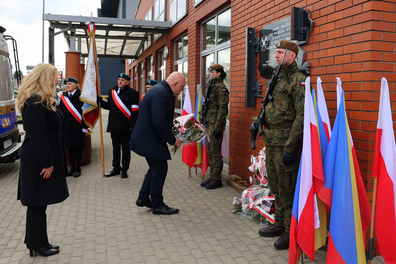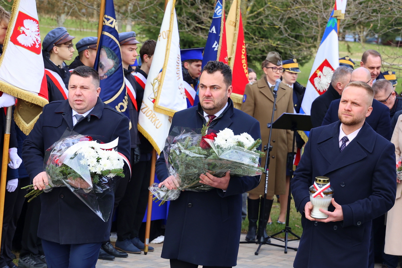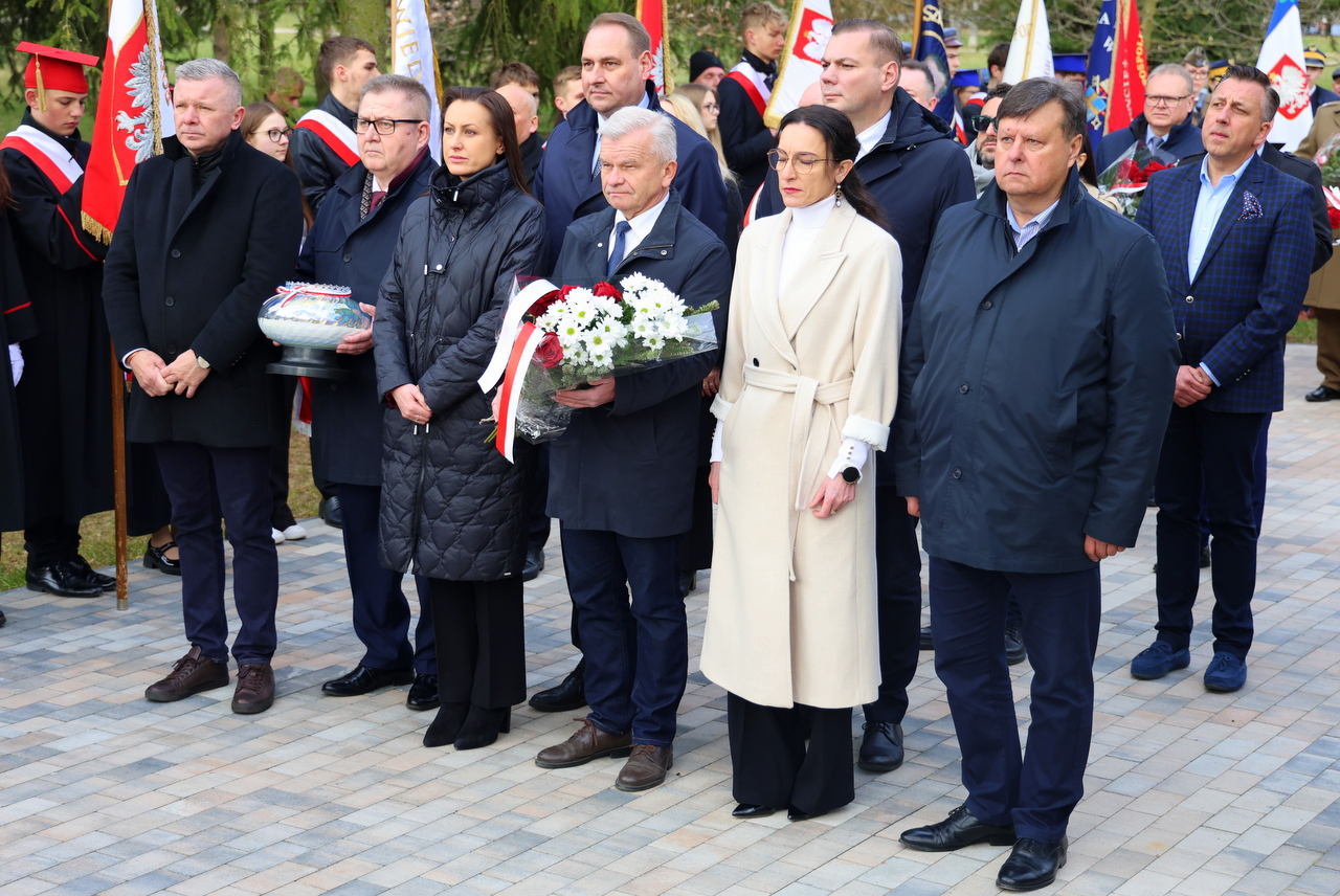 Uroczystości zgromadziły parlamentarzystów, władze miasta na czele z prezydentem Mariuszem Chrzanowskim i przewodniczącym Rady Miejskiej Wiesławem Grzymałą, przedstawicieli władz województwa, powiatu, służb mundurowych, Sybiraków, harcerzy oraz młodzież szkolną. Obecność pocztów sztandarowych i kompanii honorowej Wojska Polskiego nadała wydarzeniu podniosły charakter, zaś wartę przy pomniku pełnili żołnierze 18. Łomżyńskiego Pułku Logistycznego oraz 13. Batalionu Lekkiej Piechoty.