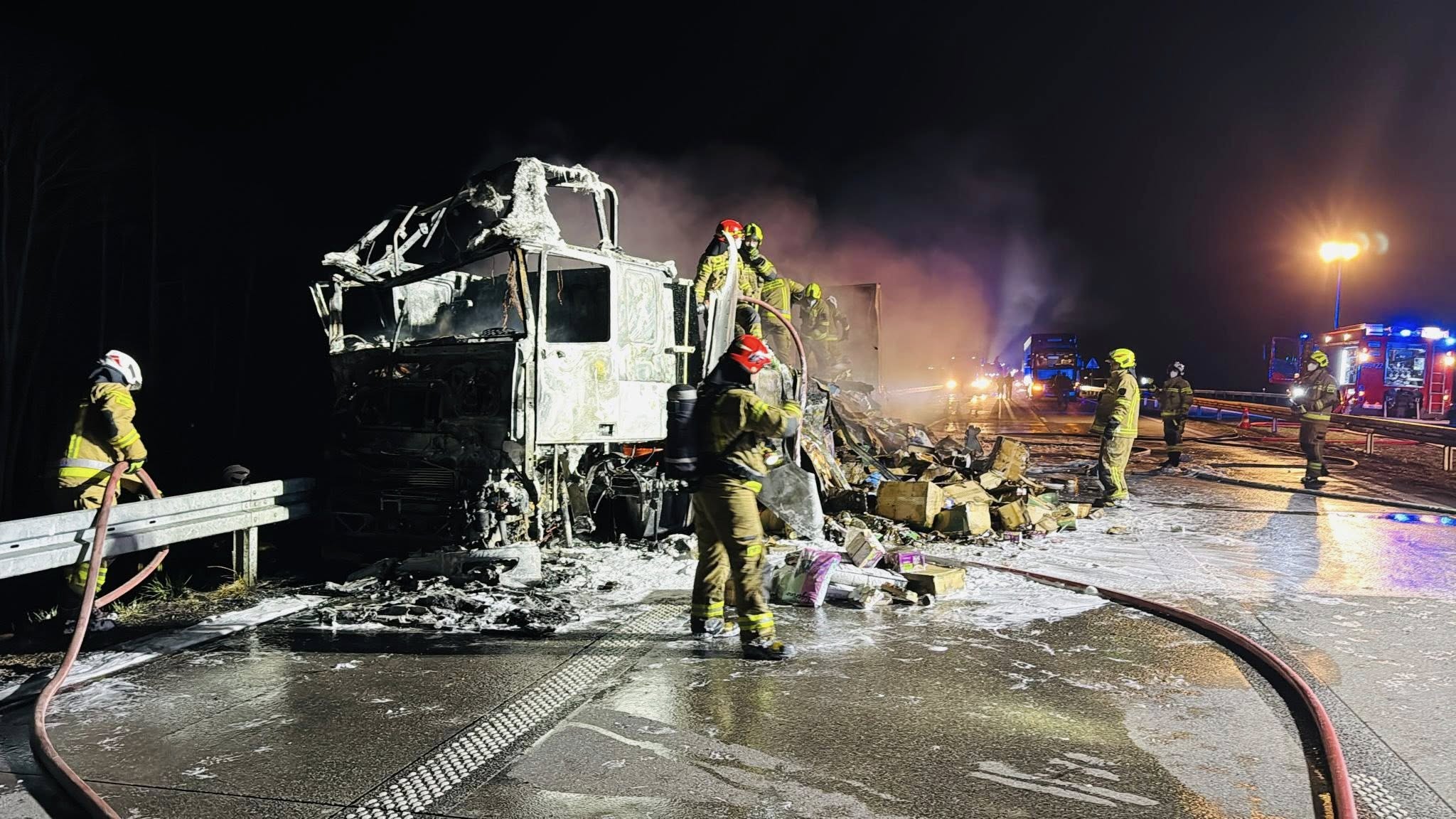 Płonące ciężarówki na S61 pod Łomżą – trasa całkowicie sparaliżowana [FOTO]
