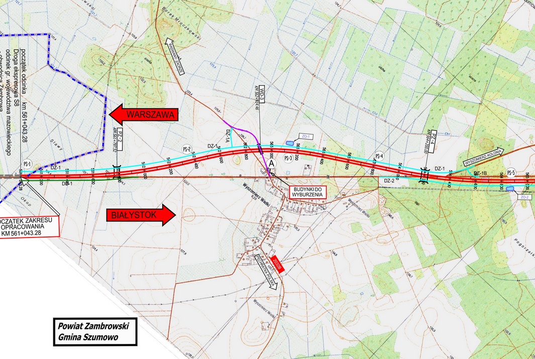 Odcinek S8 granica województwa - Zambrów realizowany jest od 28 stycznia 2015(podpisanie umowy z konsorcjum „RUBAU POLSKA” oraz „CONSTRUCCIONES RUBAU” S.A. Hiszpania).