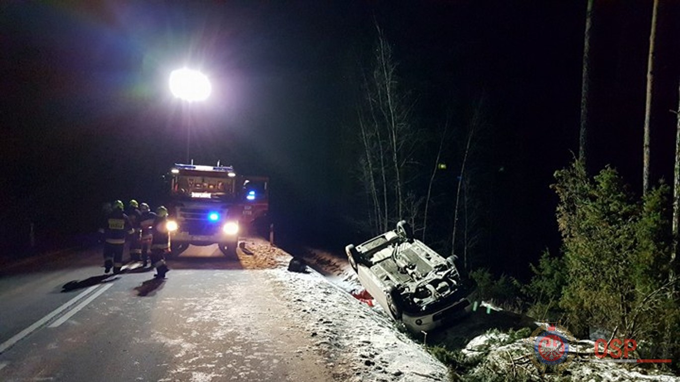 Do zdarzenia doszło na odcinku Kuzie- Łyse. Kierowcy i pasażerowi nic się nie stało i o własnych siłach opuścili auto. Ze wstępnych ustaleń policji kierowca nie dostosował prędkości do warunków panujących na drodze. Na łuku jezdni auto wpadło do rowu, a następnie dachowało.