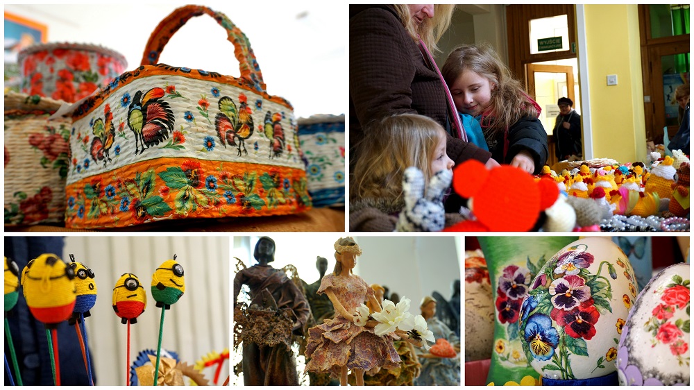 Na Jarmarku można kupić oryginalne, własnoręcznie wykonane ozdoby wielkanocne, palmy, kartki świąteczne, pisanki, koszyczki, obrazy czy rzeźby.