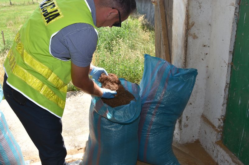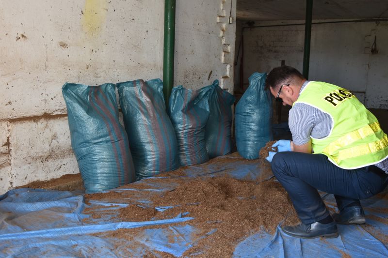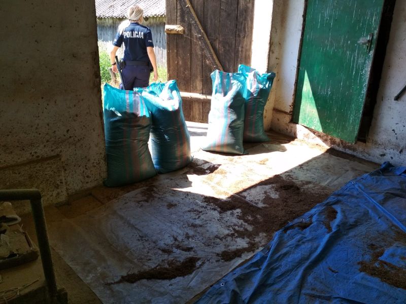 Przeprowadzenie akcji policjanci zaplanowali na koniec ubiegłego tygodnia. Funkcjonariusze weszli na teren jednej z posesji i już po chwili okazało się, że ustalenia się potwierdziły. Podczas przeszukania pomieszczeń mieszkalnych i gospodarczych mundurowi zabezpieczyli ponad 1,7 tony tytoniu oraz niemal 140 kg krajanki tytoniowej bez polskich znaków skarbowych akcyzy. Łącznie policjanci zabezpieczyli prawie 2 tony nielegalnych wyrobów. Dodatkowo została zabezpieczona maszyna do cięcia surowca.