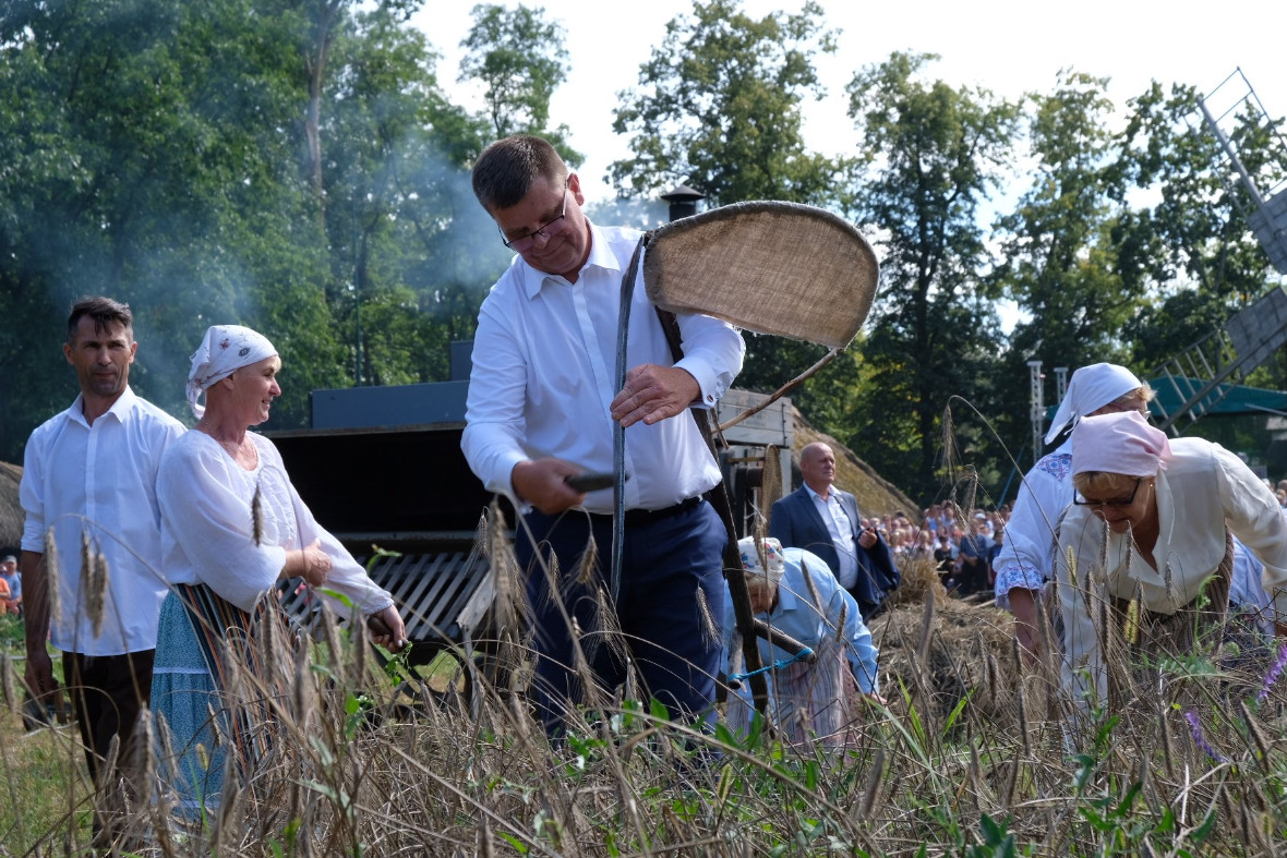Ale atrakcji, jakie Muzeum w Ciechanowcu przygotowało dla swoich gości było w niedzielę znacznie więcej. Wszyscy, którzy tego dnia przyjechali do muzeum mogli uczestniczyć w życiu, jakie toczyło się w czasie żniw na XIX-wiecznej podlaskiej wsi. Prezentowane były dawne obrzędy i zwyczaje związane ze żniwami i dożynkami. Pokaz żniwny rozpoczął się ok. 14.30 pokazem zbioru żyta za pomocą sierpów, następnie kos. Żniwiarze zaprezentowali też obrzęd zdobienia „przepiórki” i jej „oborania” (to niezwykle emocjonujący zwyczaj przeciągania po polu za nogi najmłodszej żniwiarki).