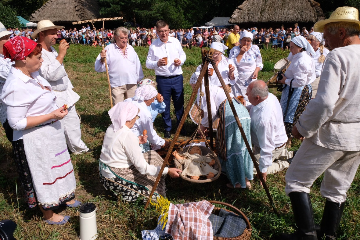 – W imieniu zarządu i obecnych tu licznie radnych sejmiku chciałem powitać i pozdrowić gości z Polski i zagranicy. Cieszymy się, że możemy dzisiaj gościć was na naszej ziemi ciechanowickiej, podlaskiej – mówił na początku imprezy marszałek Jerzy Leszczyński. - W tym roku święto chleba obchodzi swoje 18 urodziny, moża powiedzieć, że osiągnęło już pełnoletność. I z każdym rokiem widać nie tylko jak ta impreza się rozrasta, ale i jak pięknie rozwija się samo Muzeum Rolnictwa, także dzięki przeznaczanym środkom z budżetu województwa i środkom unijnym. Dzisiejsze święto to też dziękczyneinie za trud rolnika. Wiemy, że ten rok ze względu na suszę był wyjątkowo trudny dla rolników, mamy jednak nadzieję, że także dzięki wsparciu rządu uda im się przejść ten trudny czas, a w przyszłości uda nam się znaleźć pieniądze aby zabezpieczyć odpowiedni bilans wody. Mam nadzieję, że za chwilę wszyscy – bez względu na swoje przekonania – podzielimy się chlebem, pięknym, polskim symbolem pojednania.
